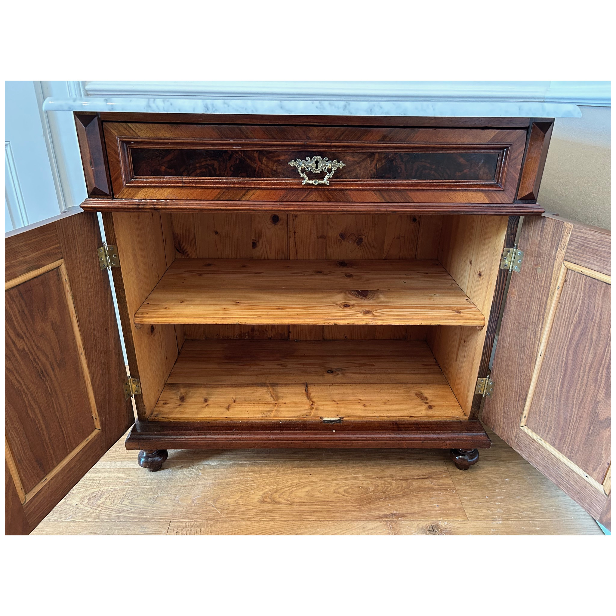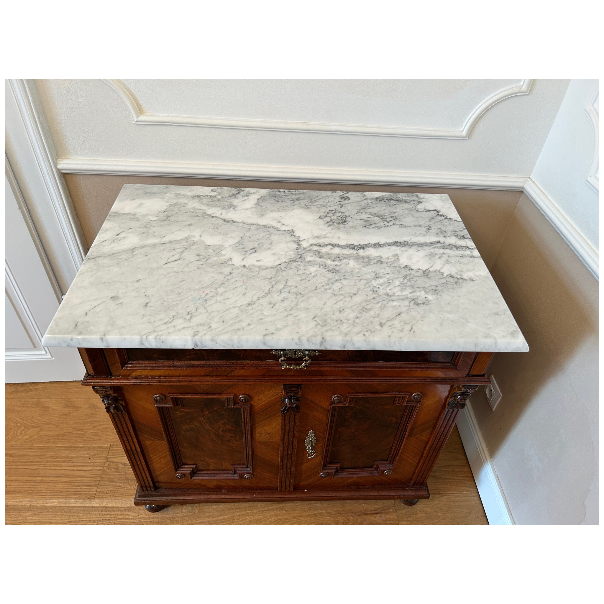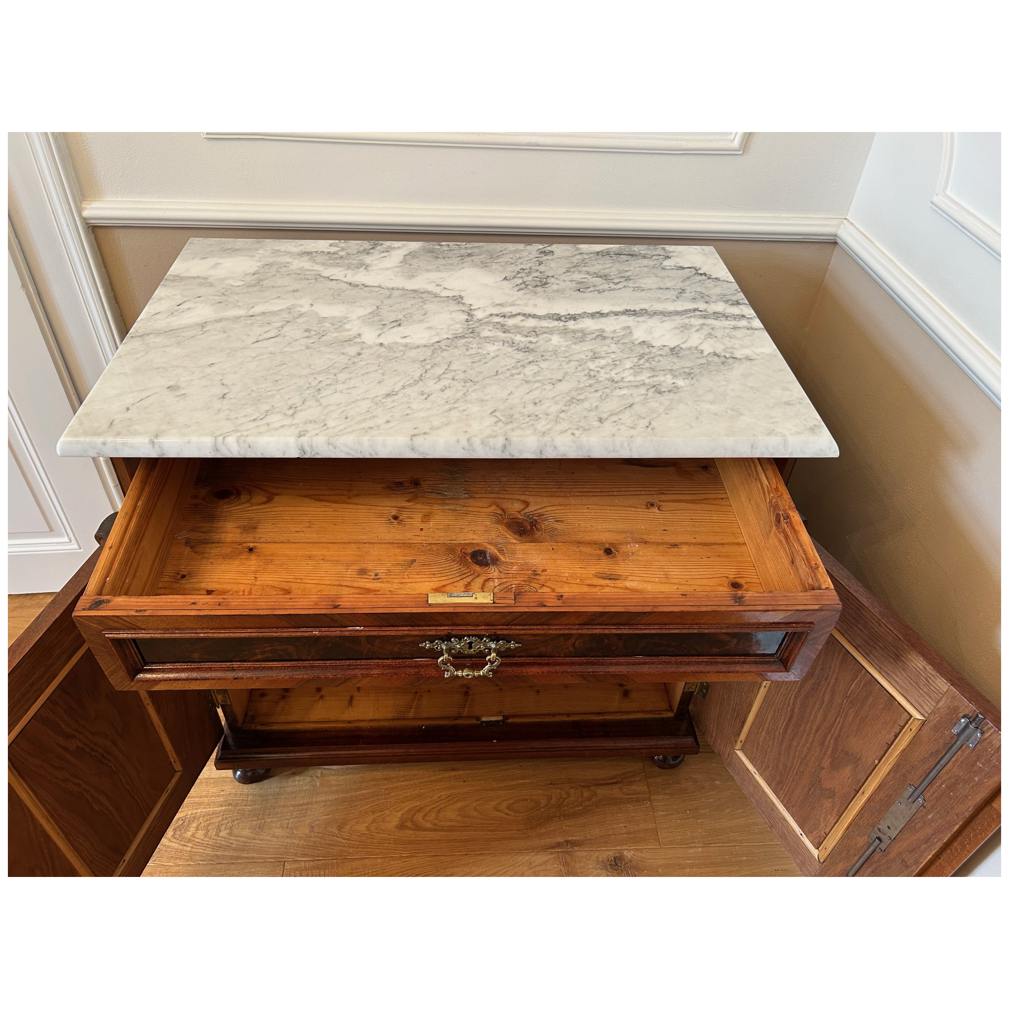 Komoda s horní mramovou deskou, 2-dveřová s policí a horní zásuvkou
