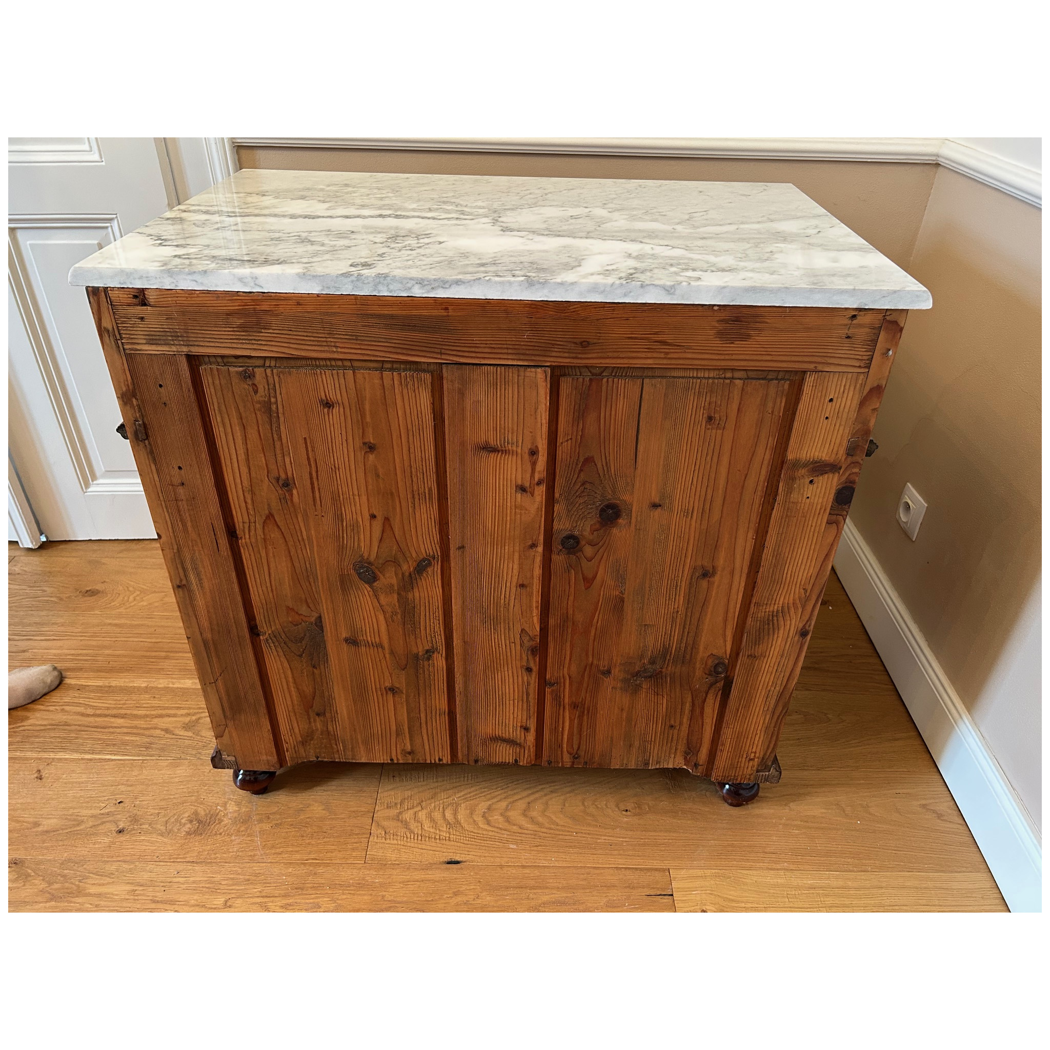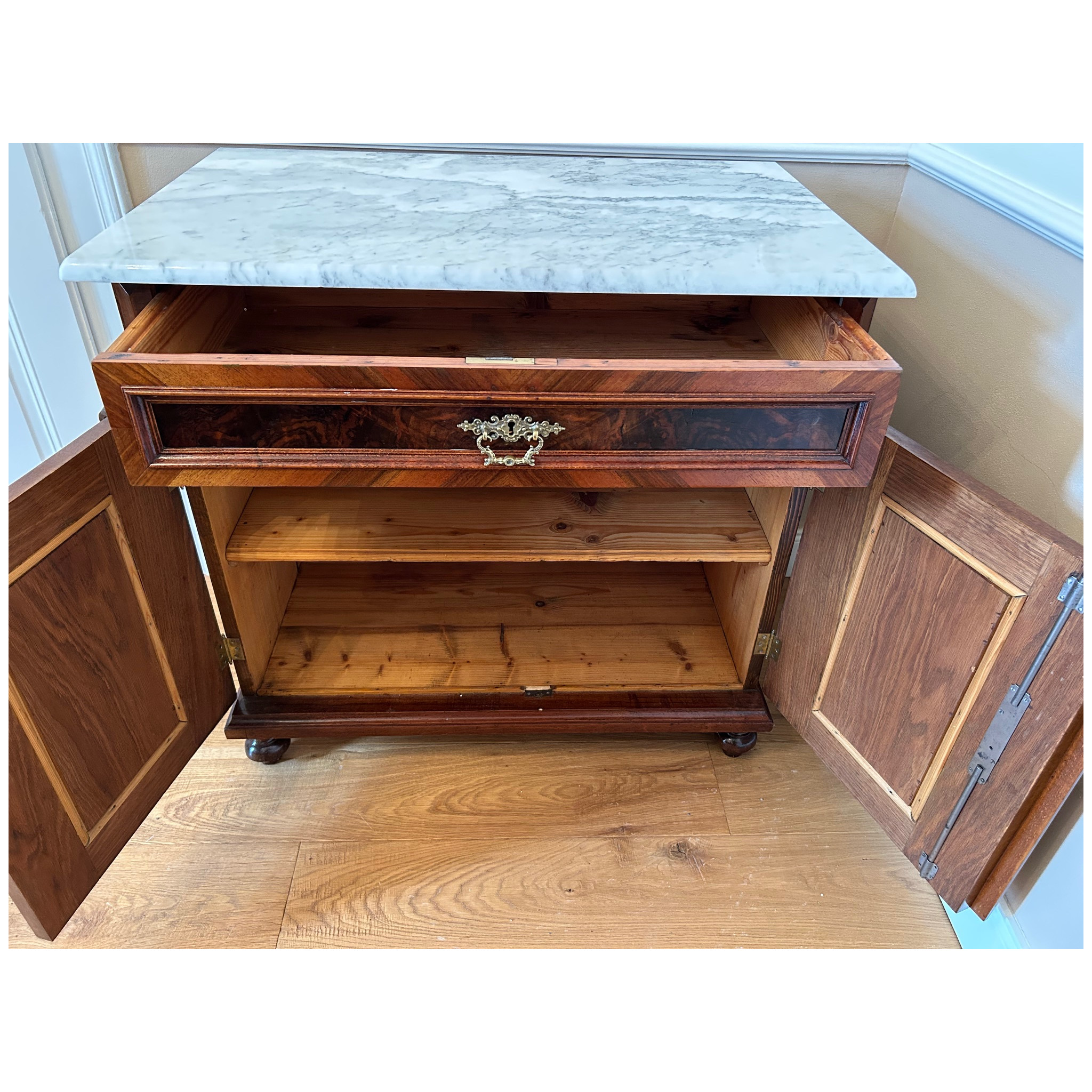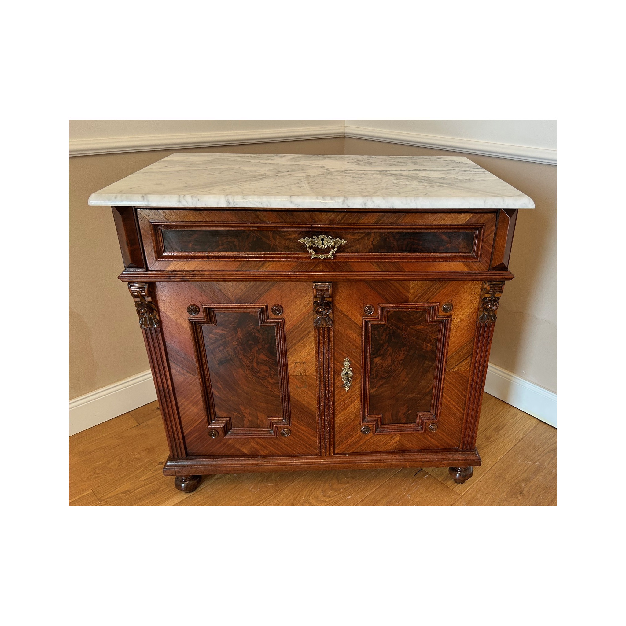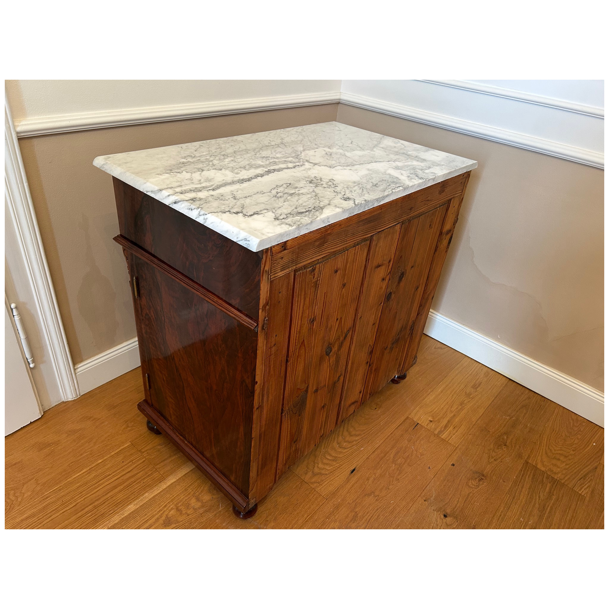 Komoda s horní mramovou deskou, 2-dveřová s policí a horní zásuvkou