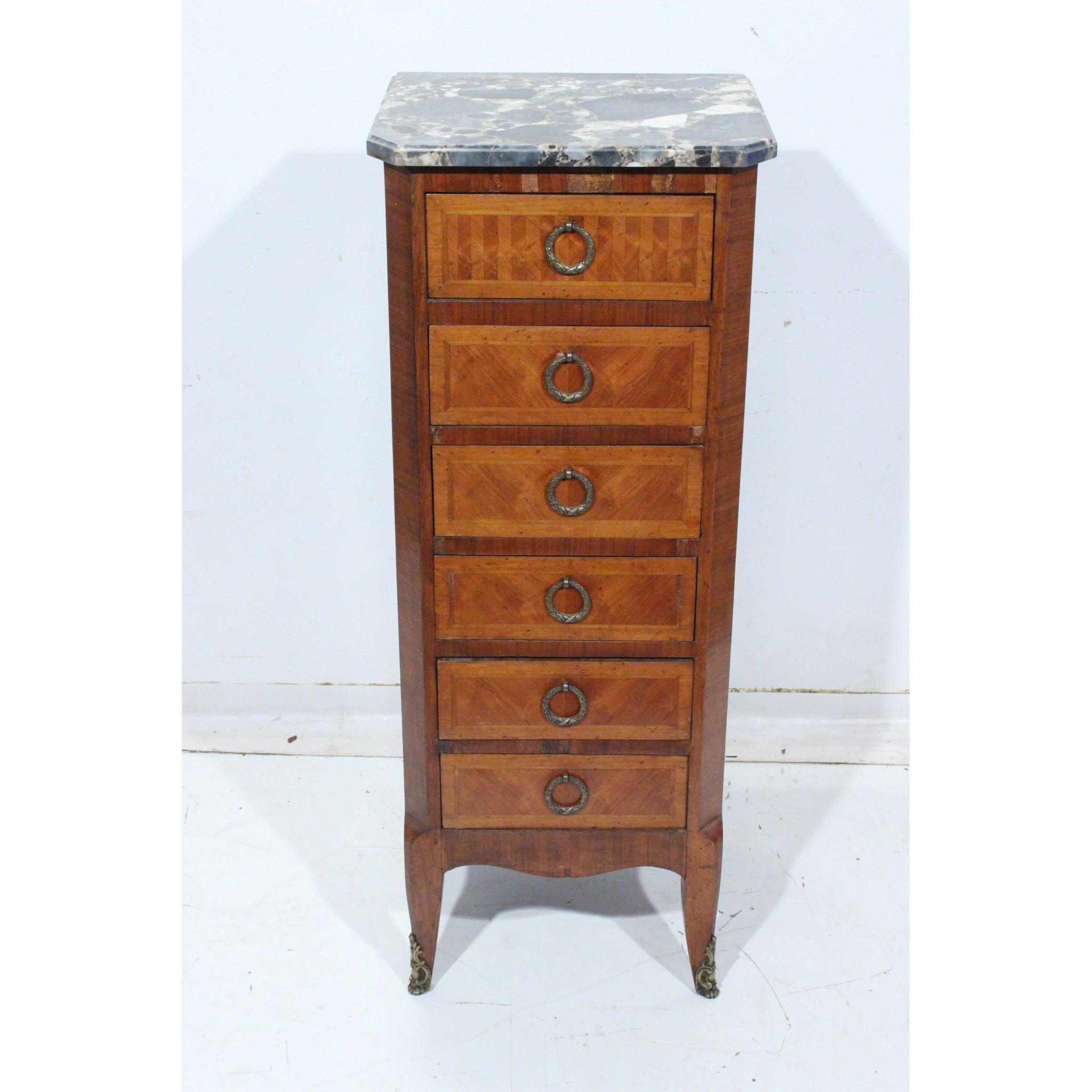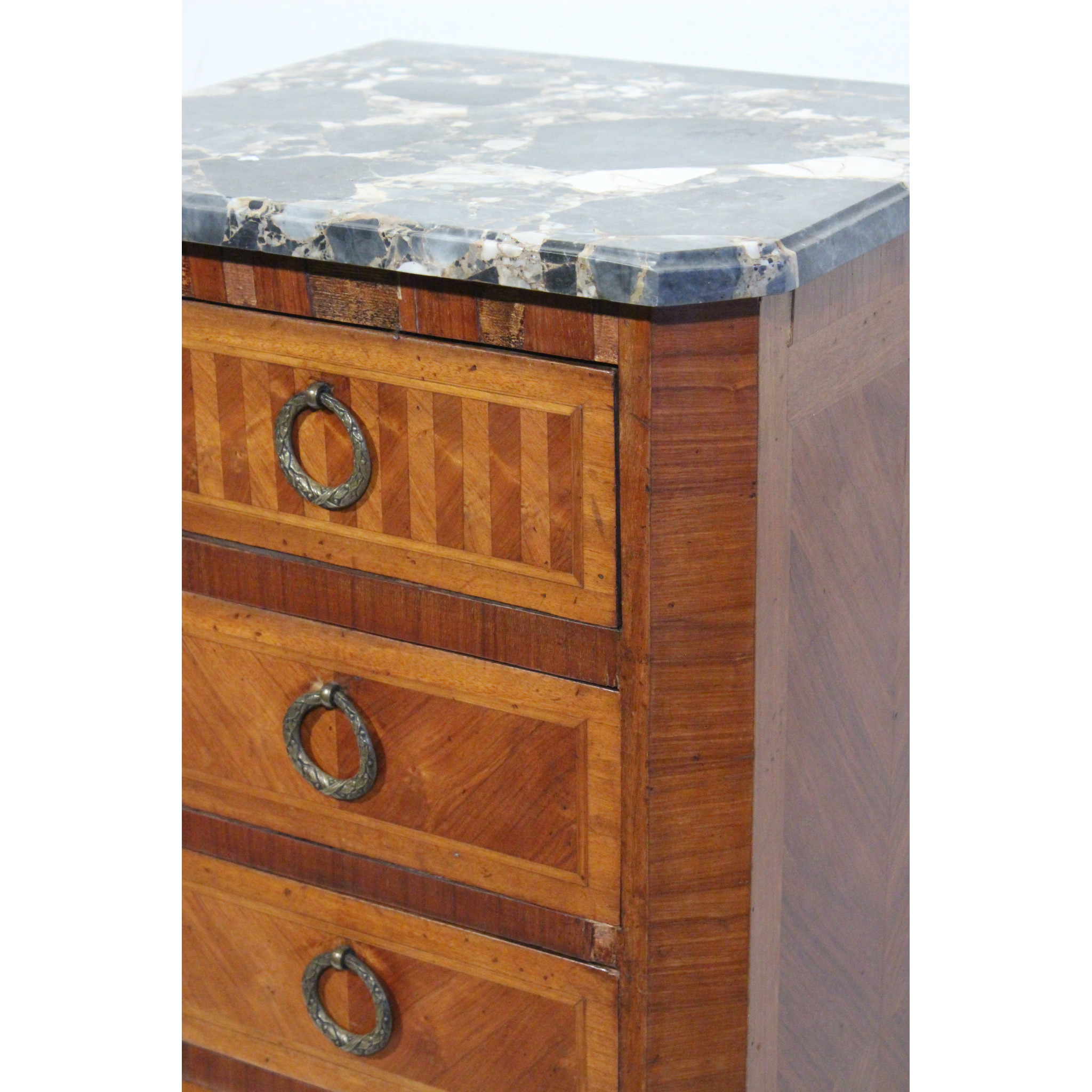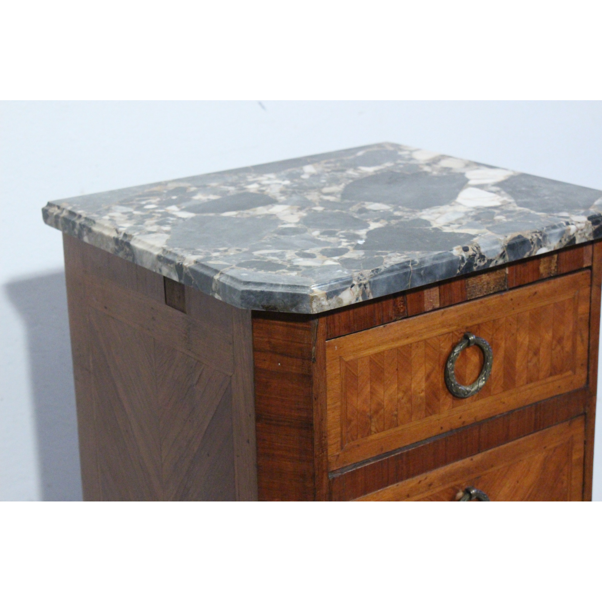 Materiál: geometrická intarzie z ovocných dřevin, mramorová deska
