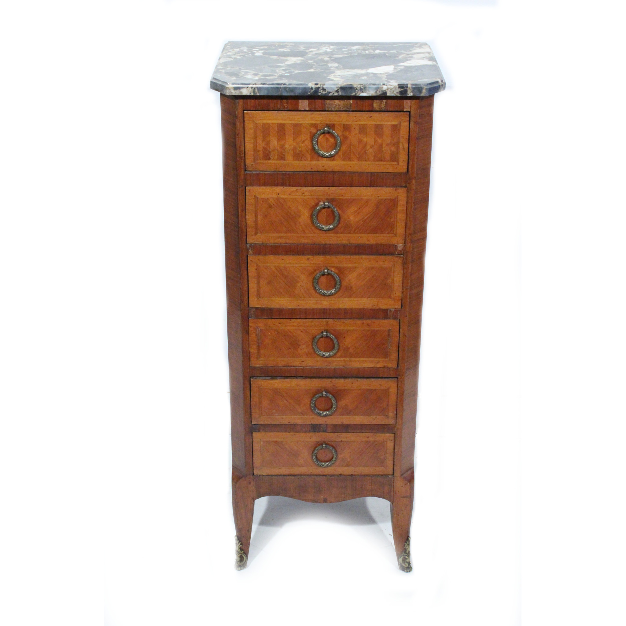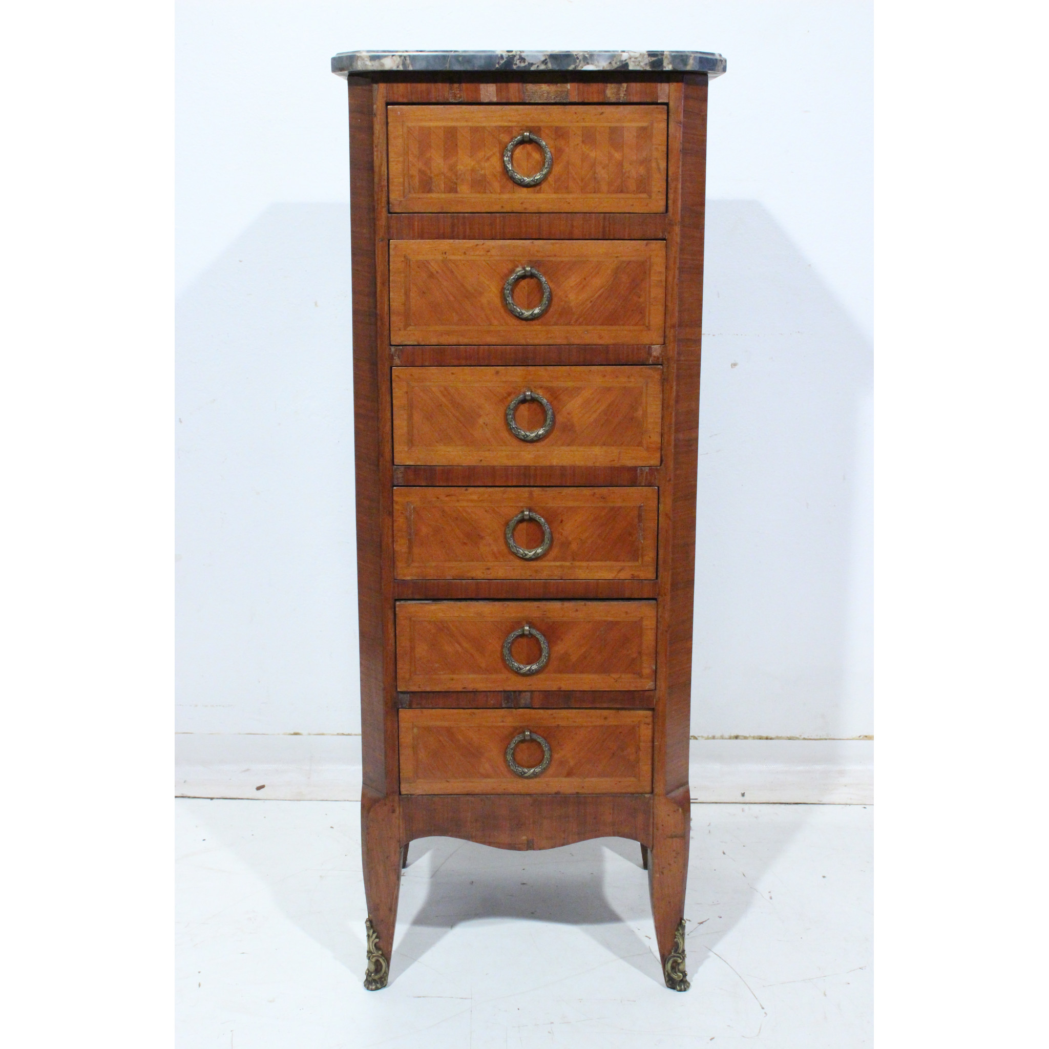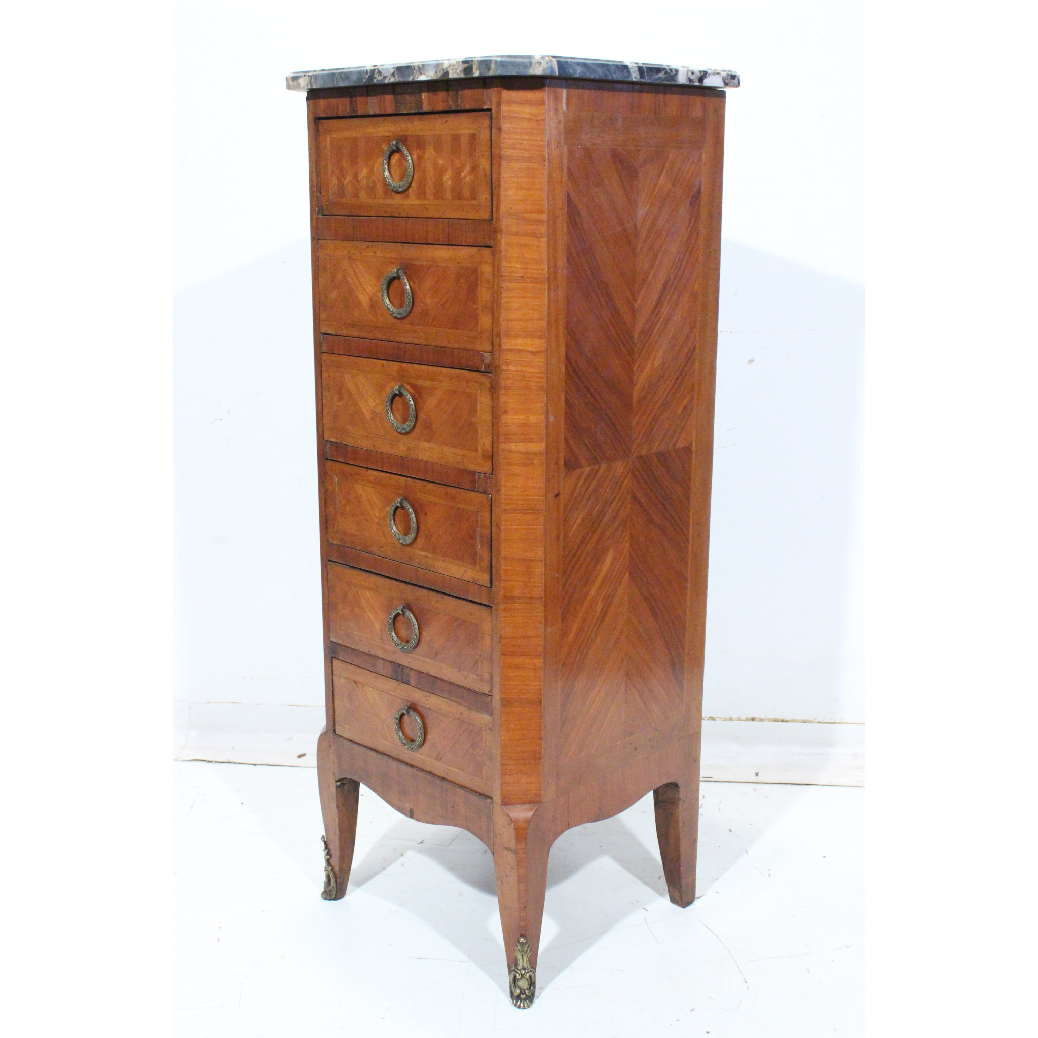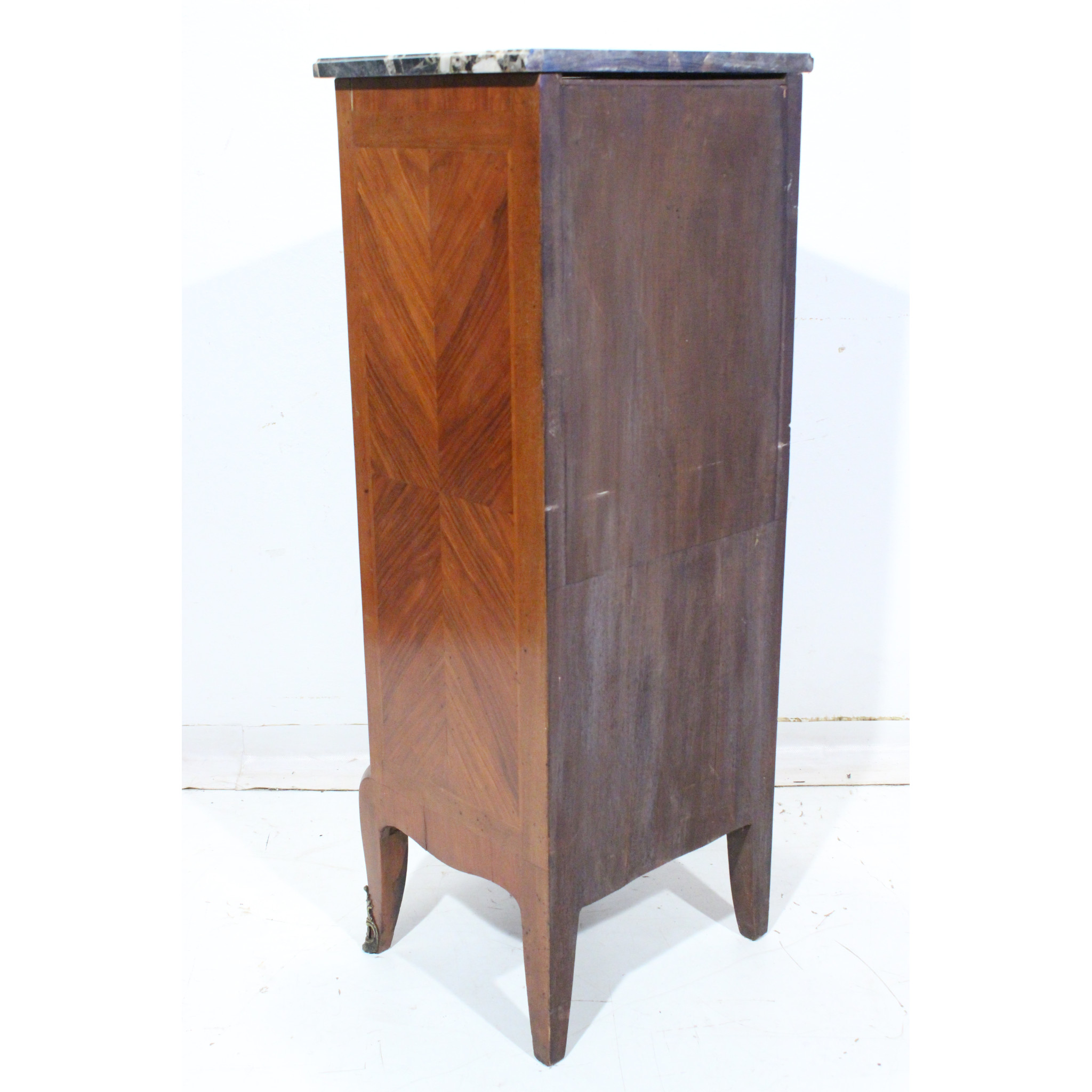 Materiál: geometrická intarzie z ovocných dřevin, mramorová deska