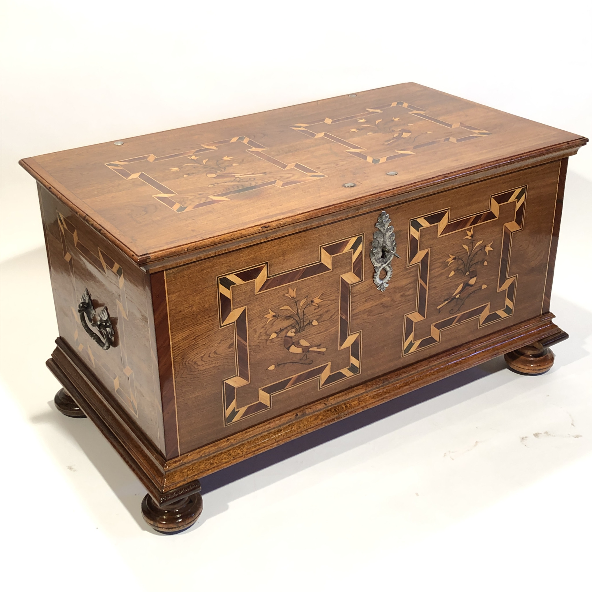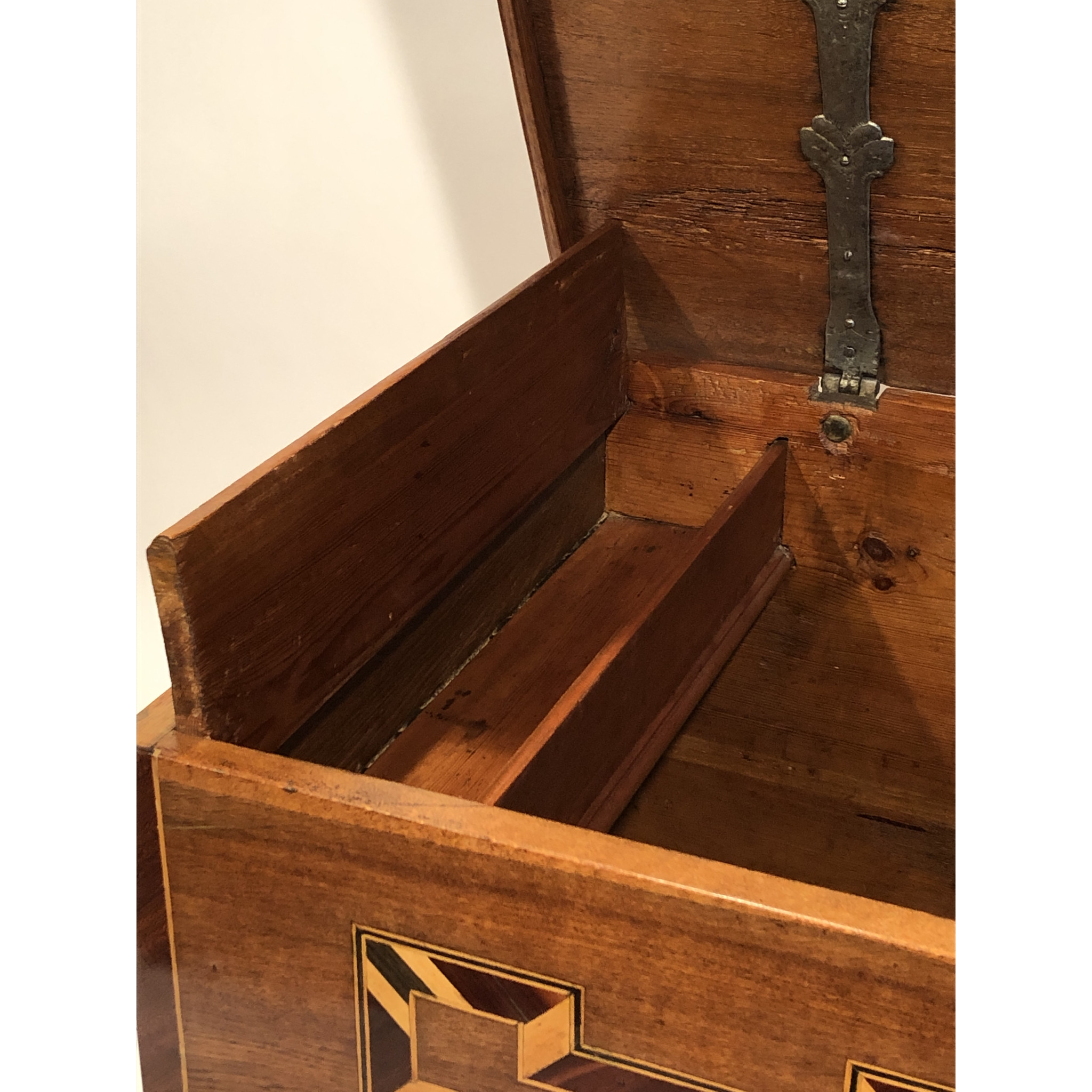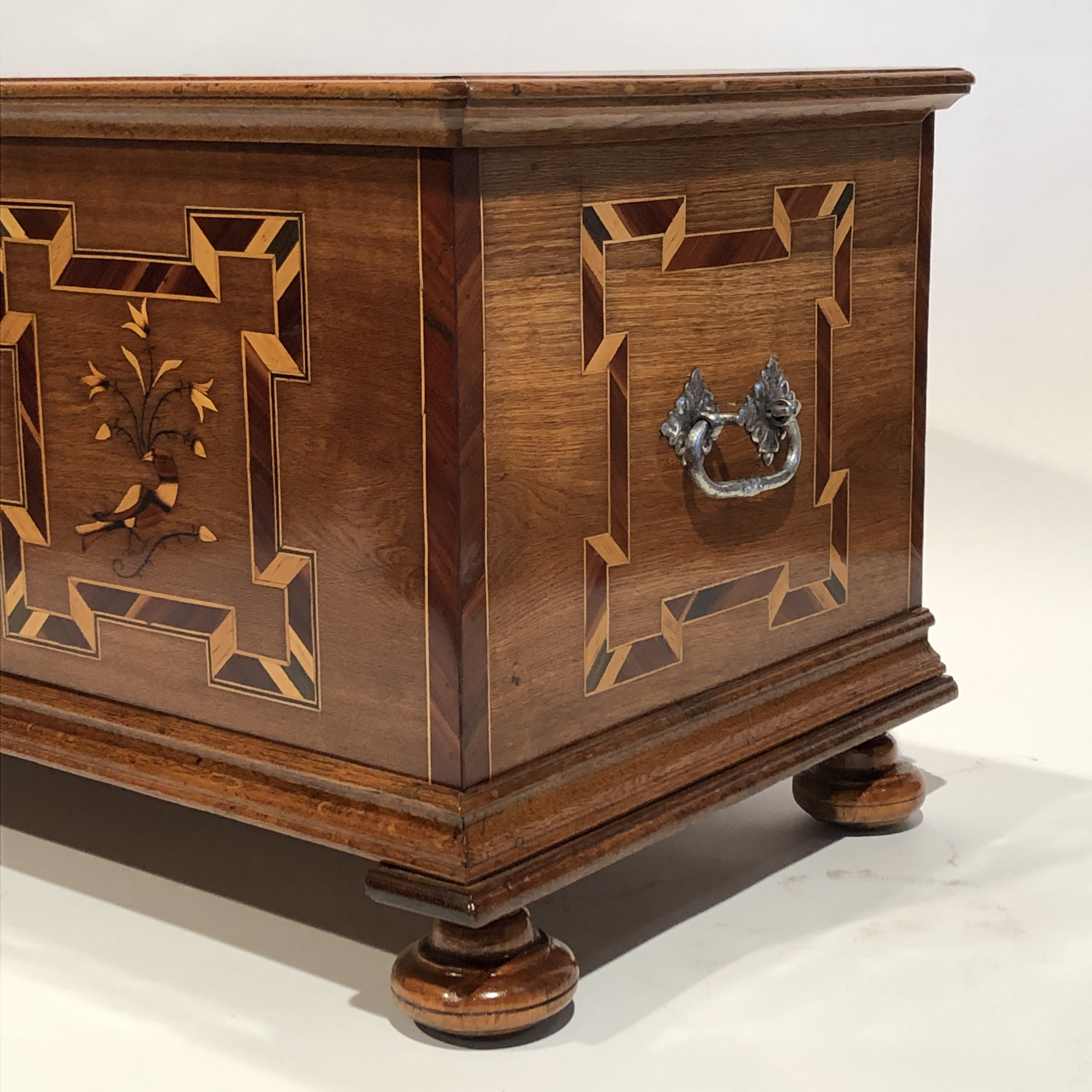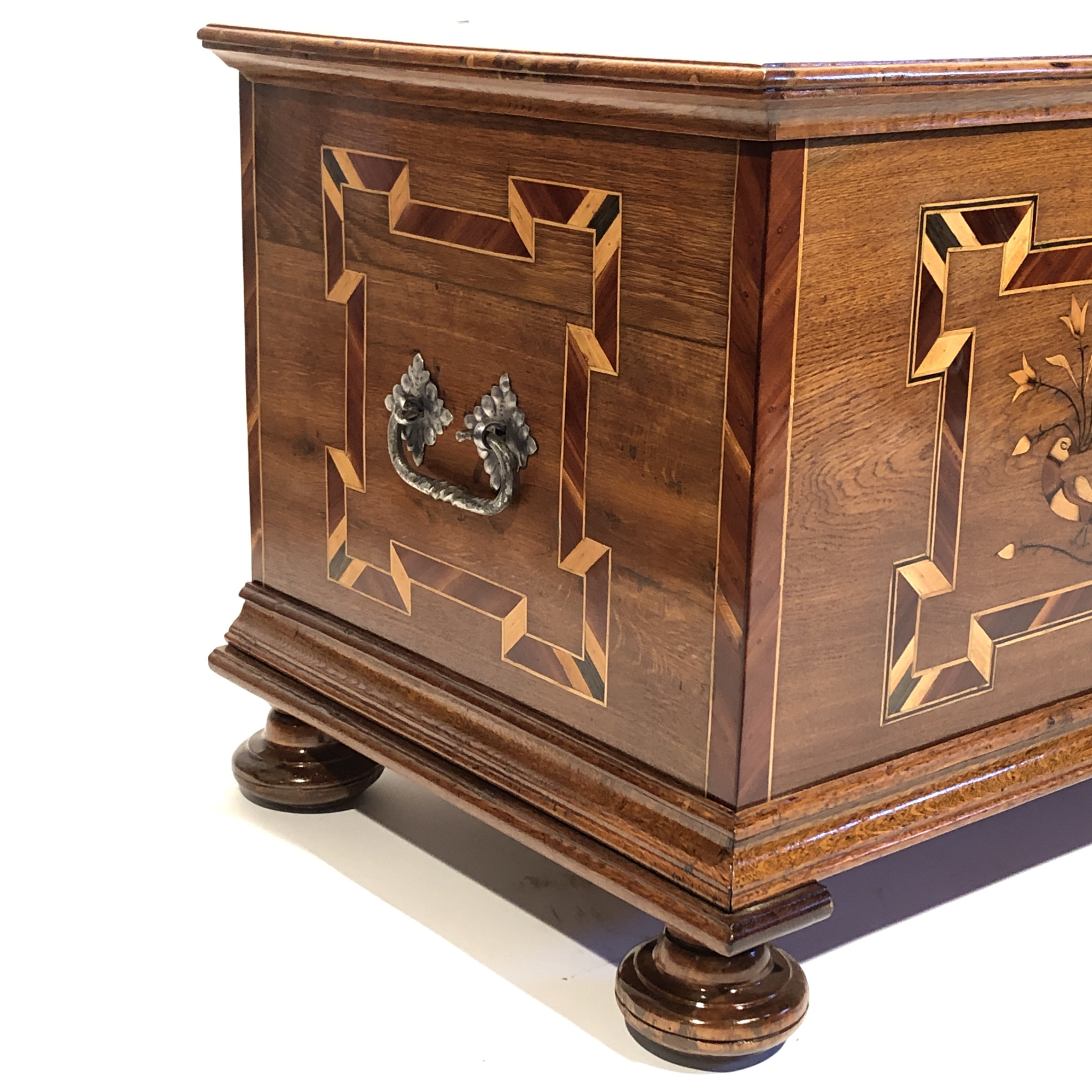 Materiál: dub masiv, intarzie z ovocných dřevin