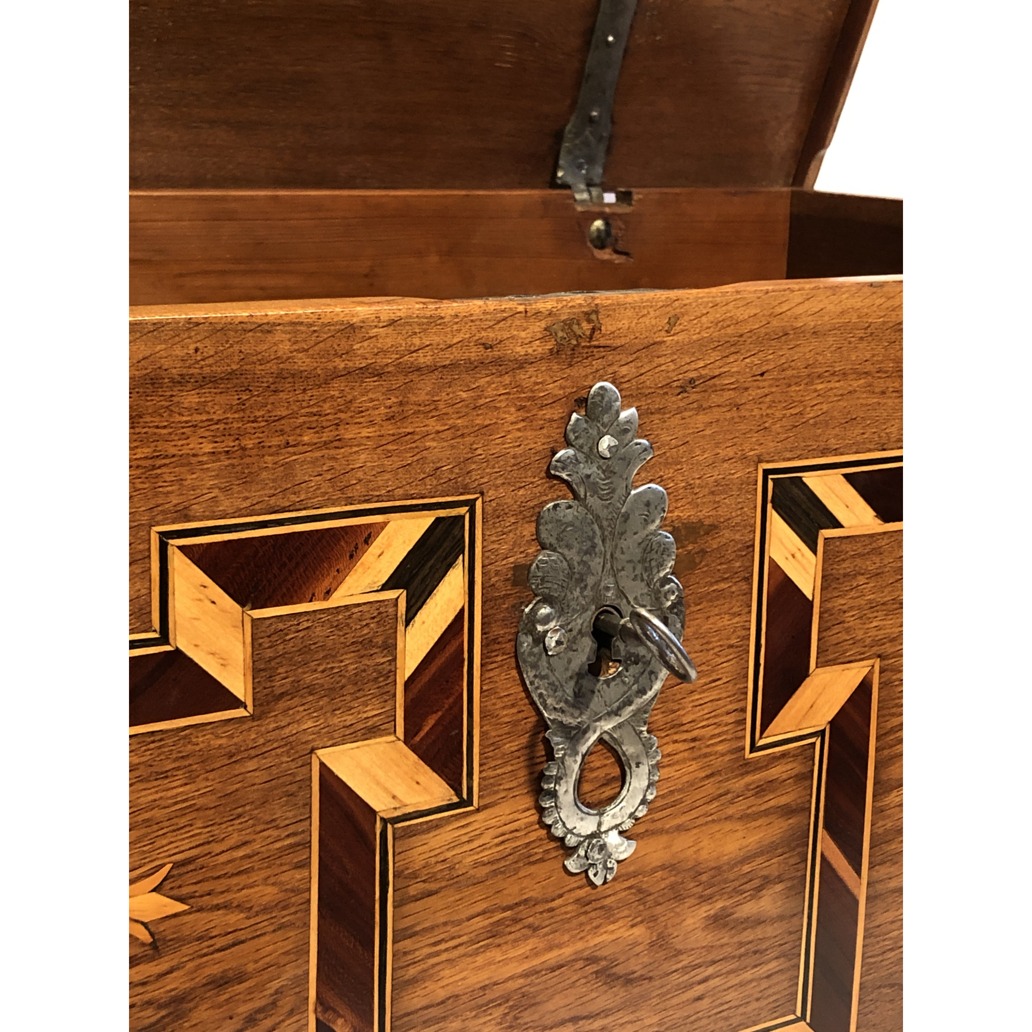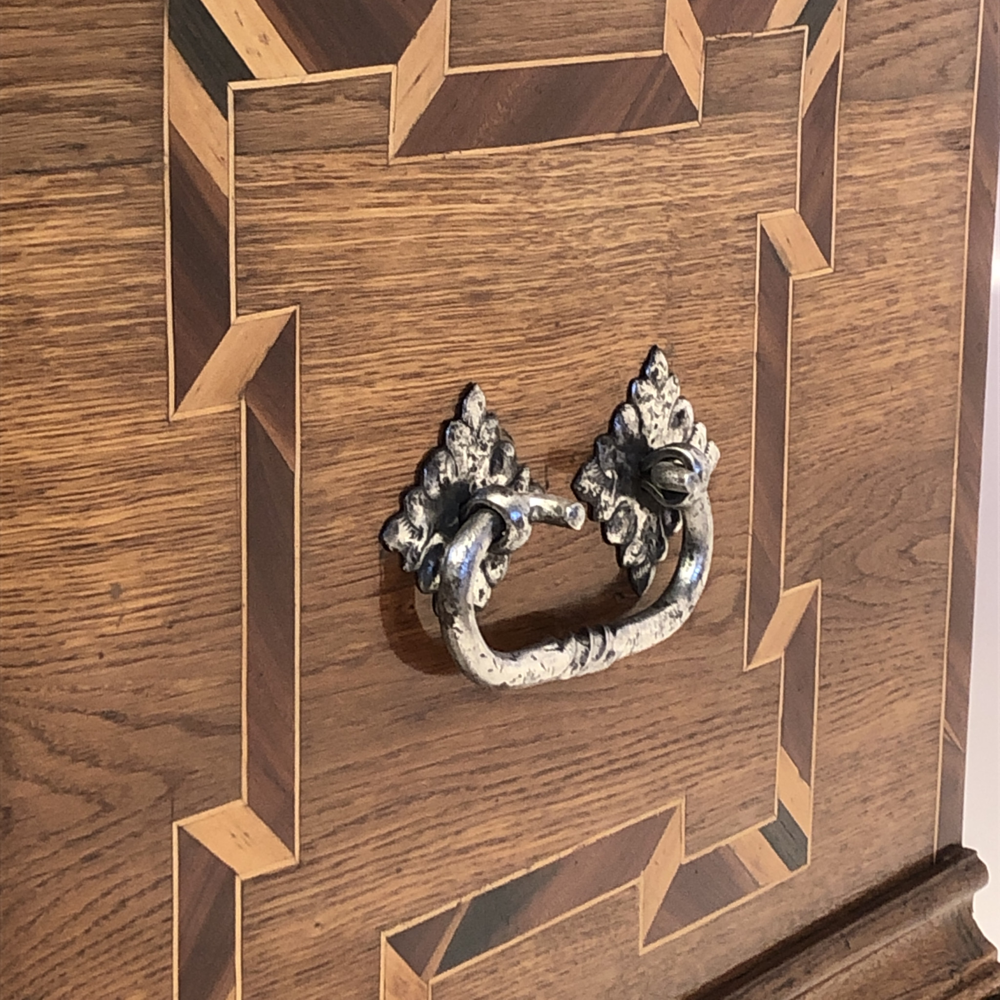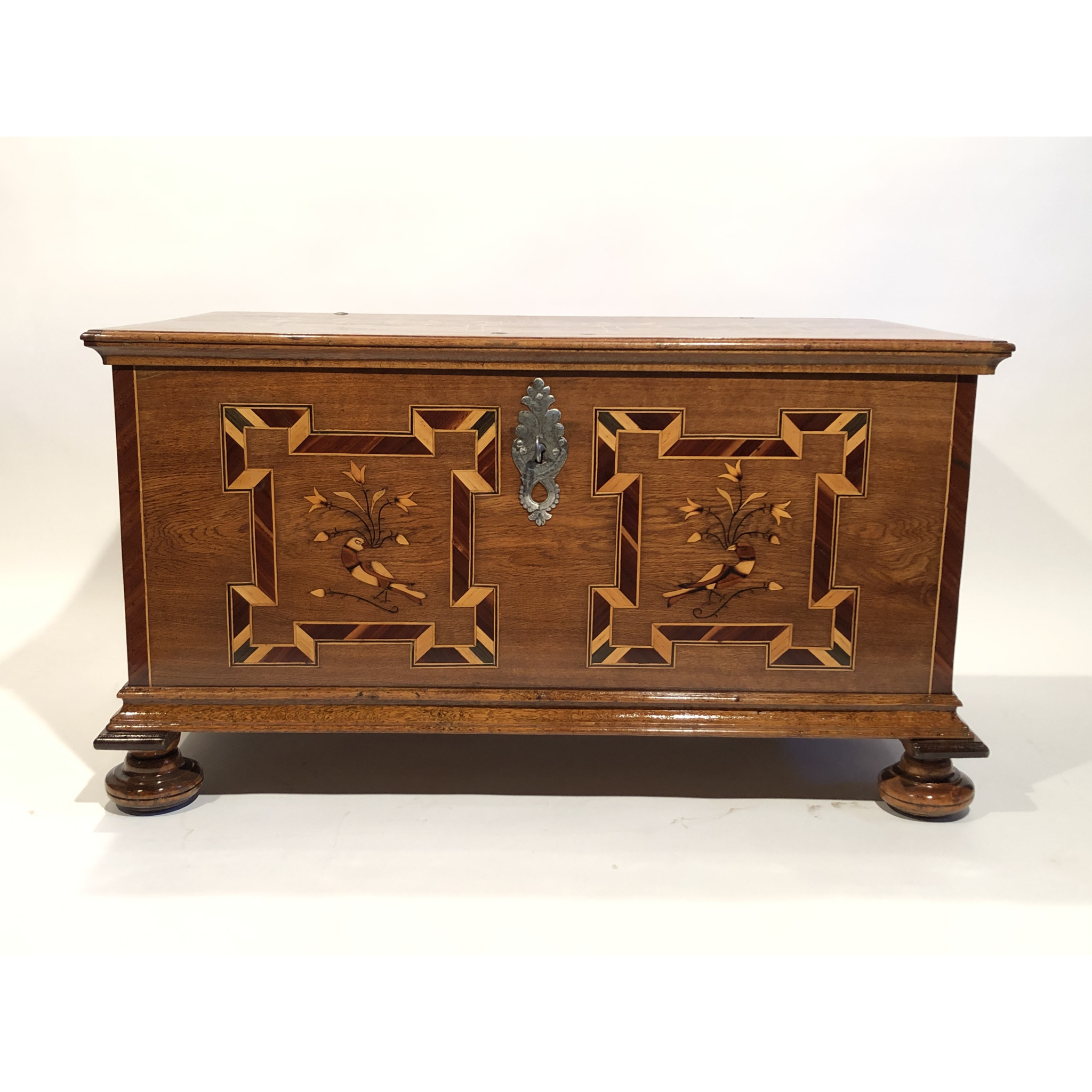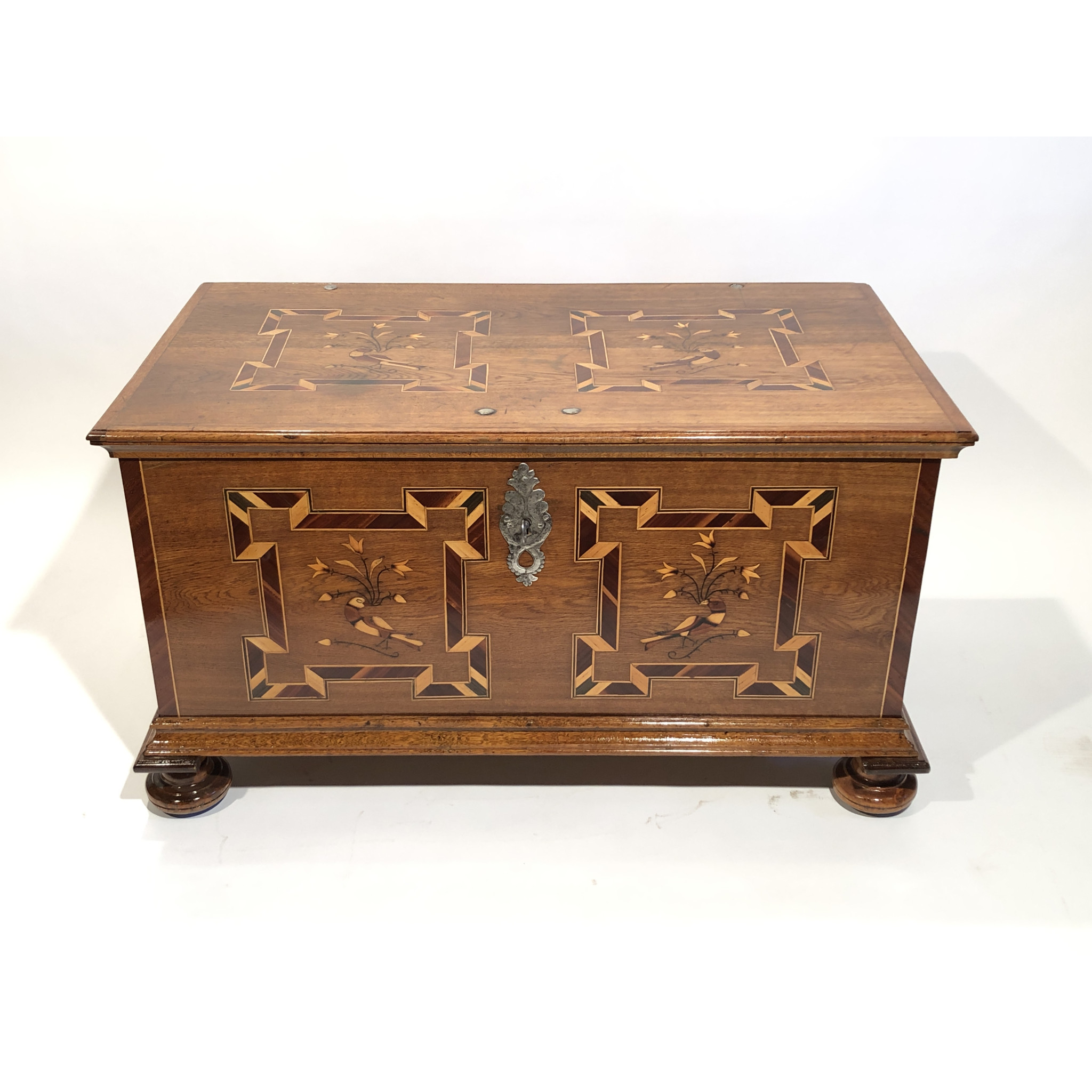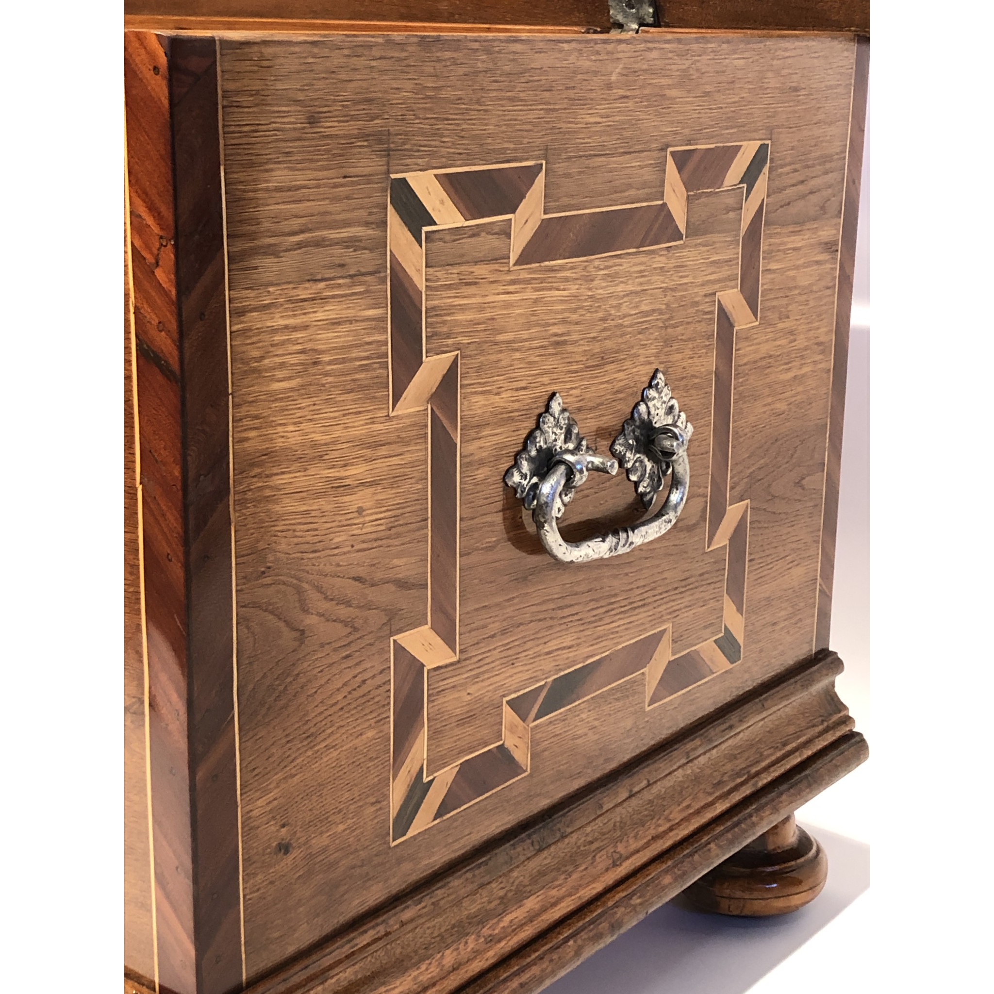 Materiál: dub masiv, intarzie z ovocných dřevin