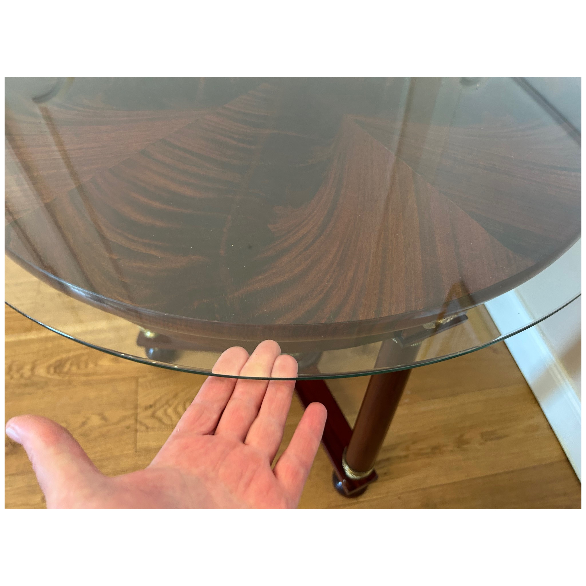 Materiál: pyramidový mahagon, mosazné apliky, sklo