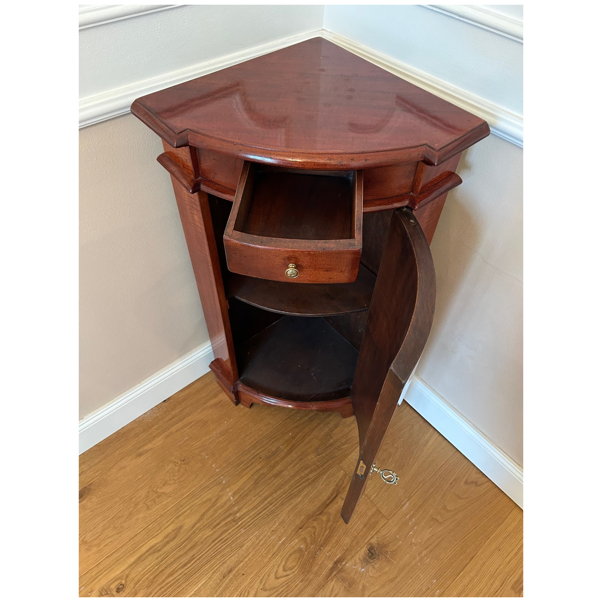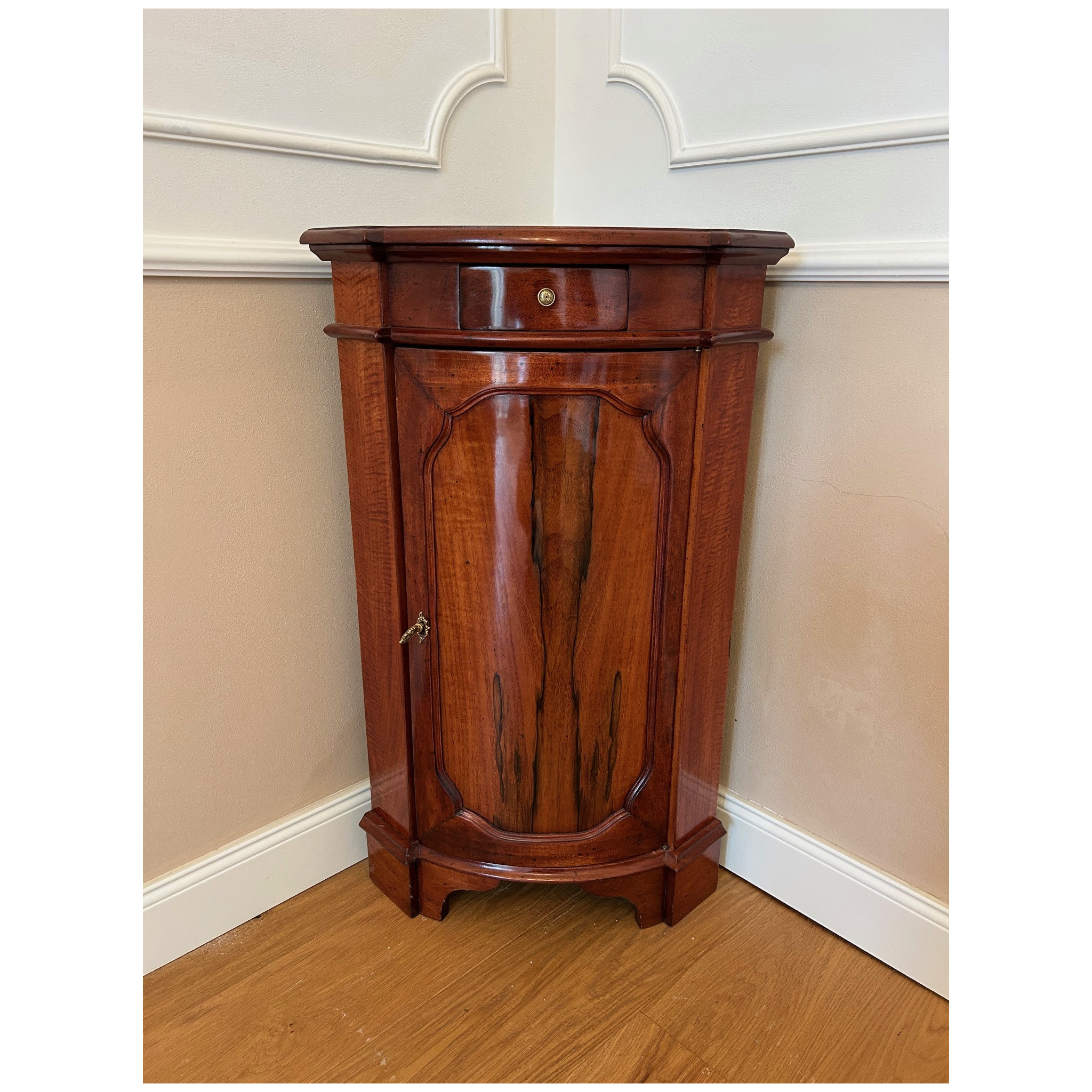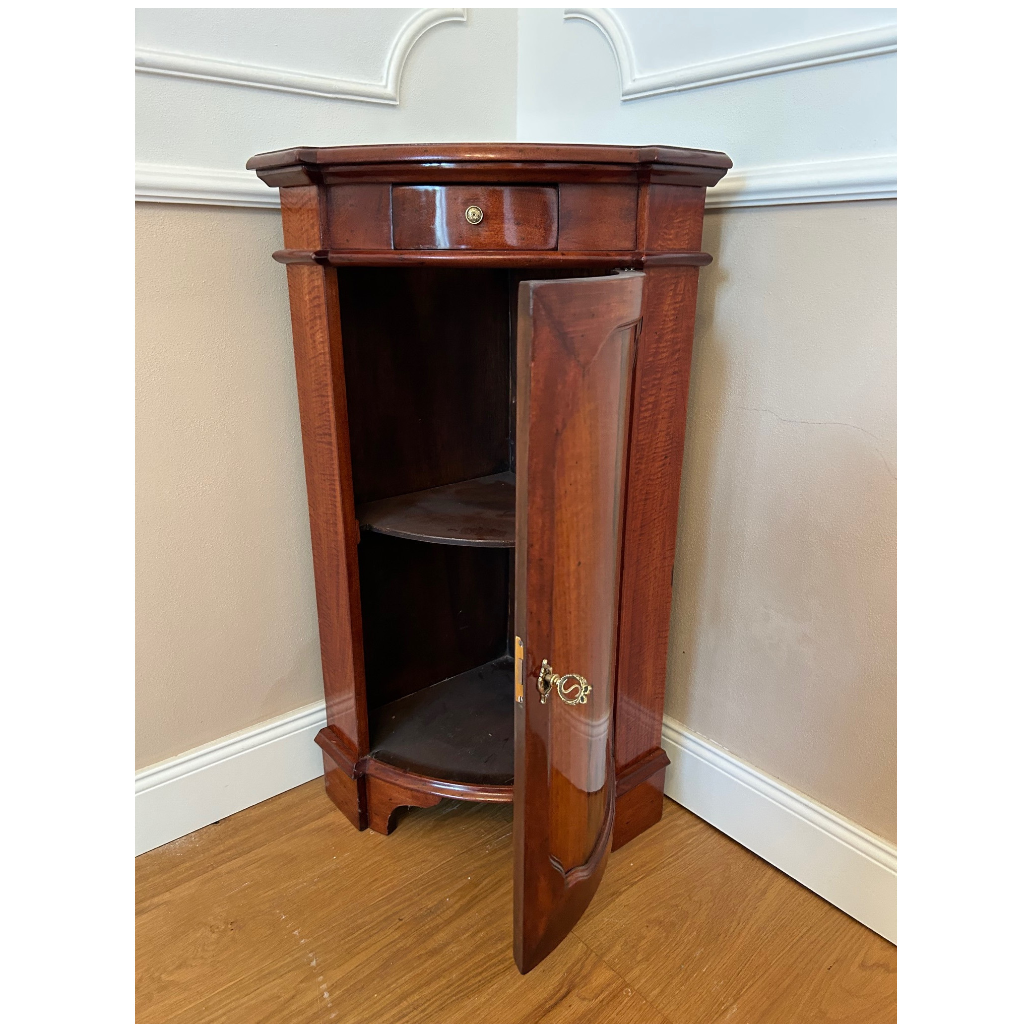 Skříňka rohová s vnitřní policí a horní malou zásuvkou.