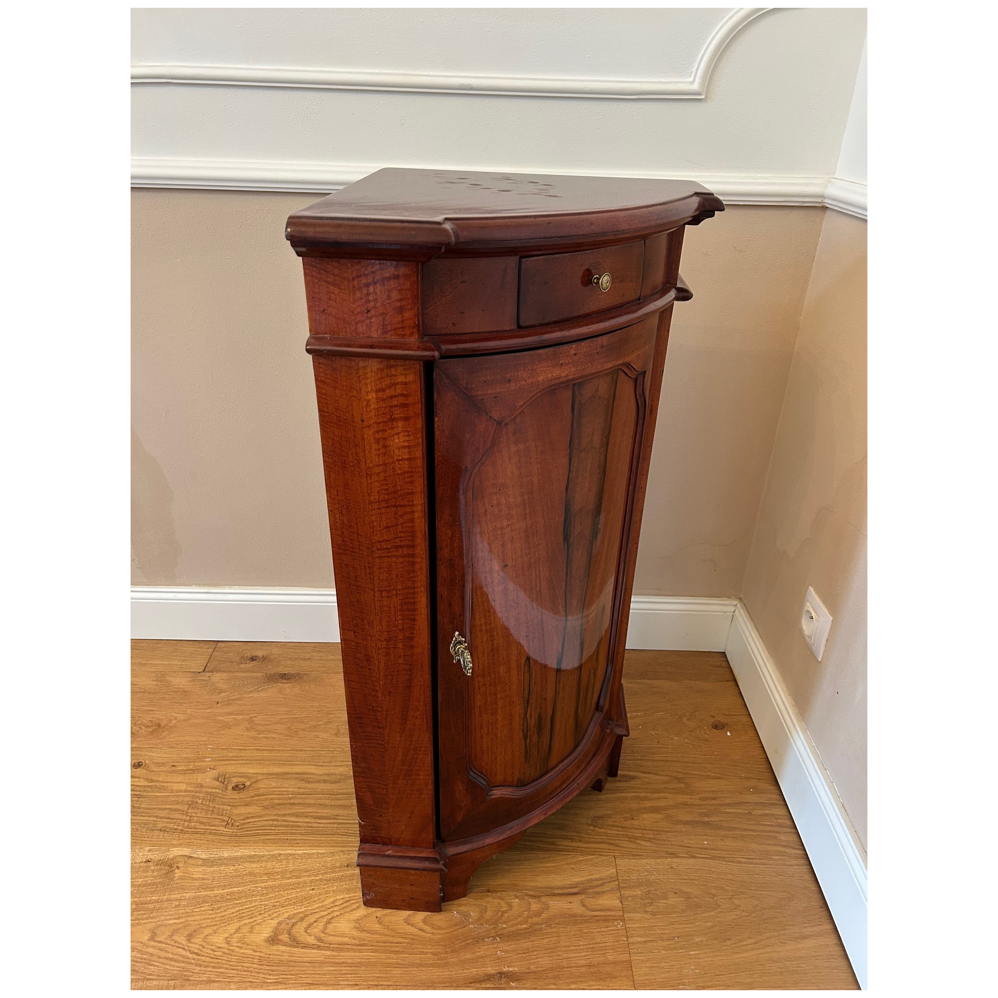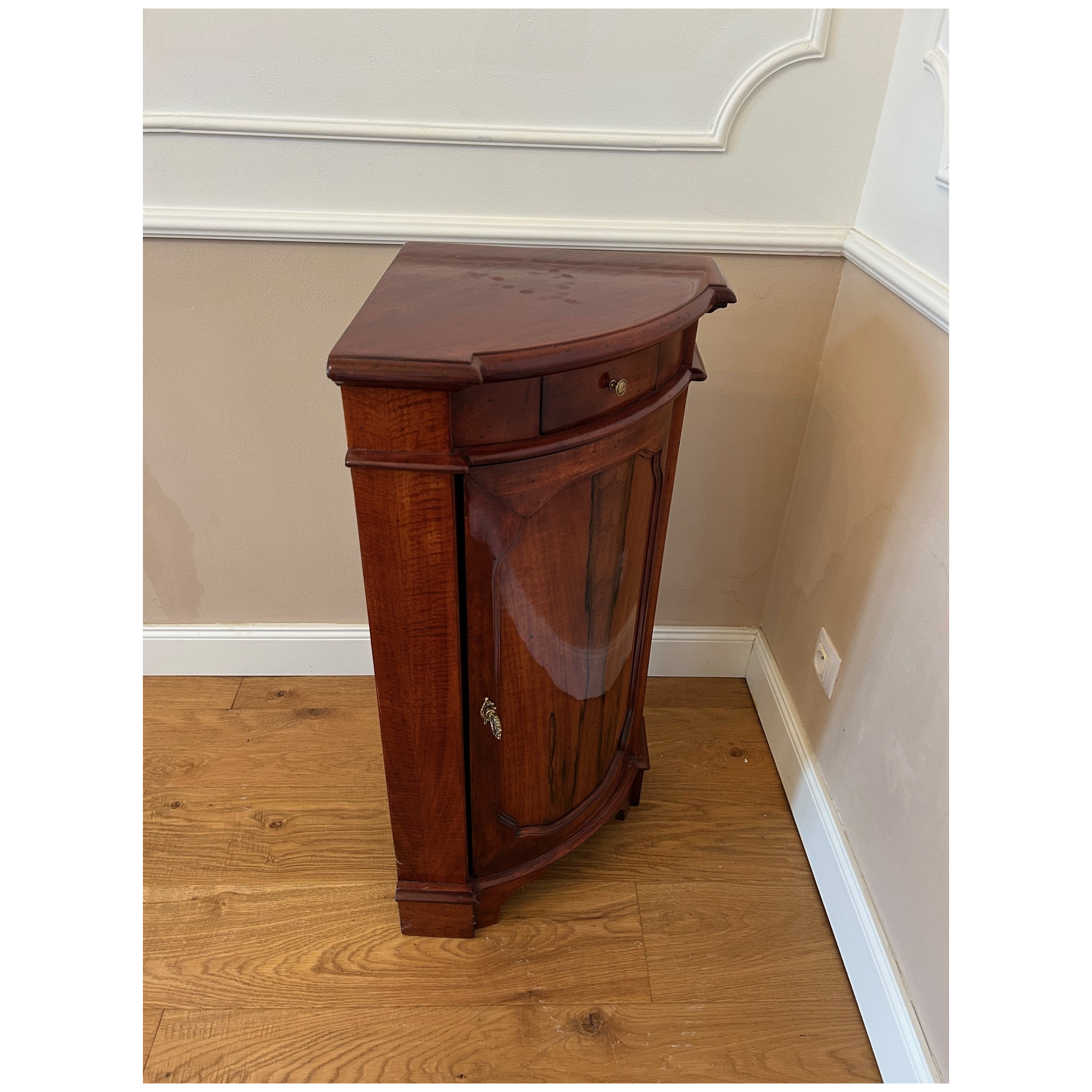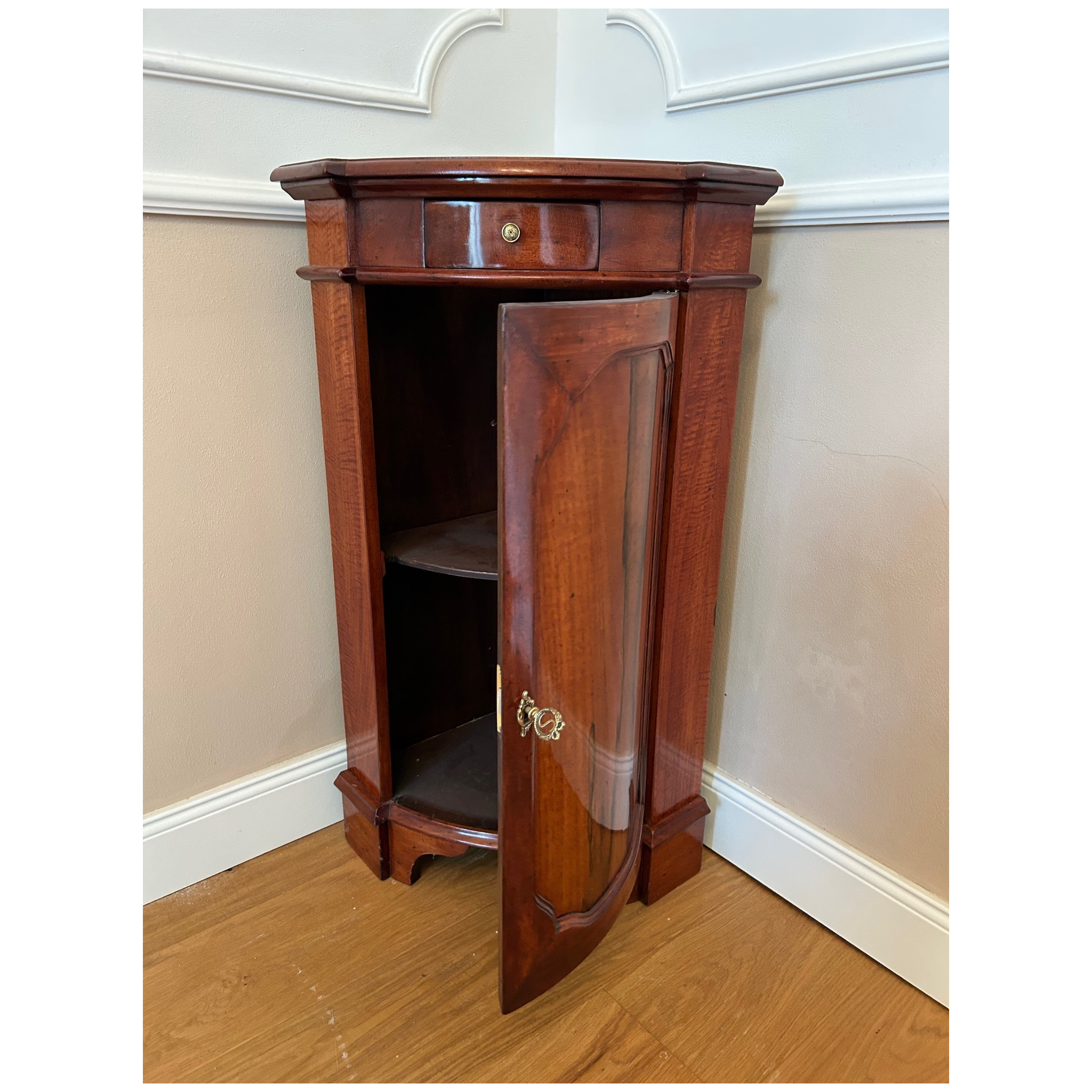 Skříňka rohová s vnitřní policí a horní malou zásuvkou.