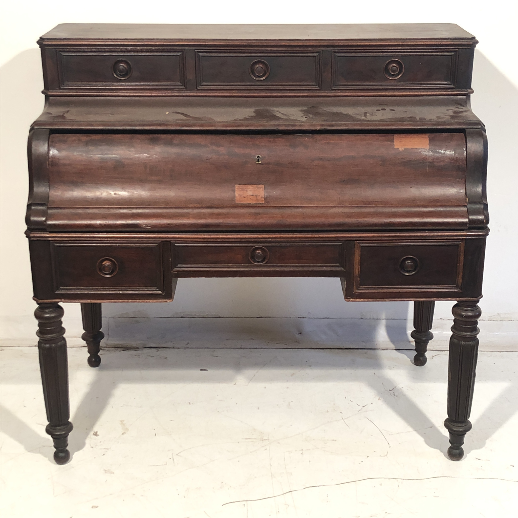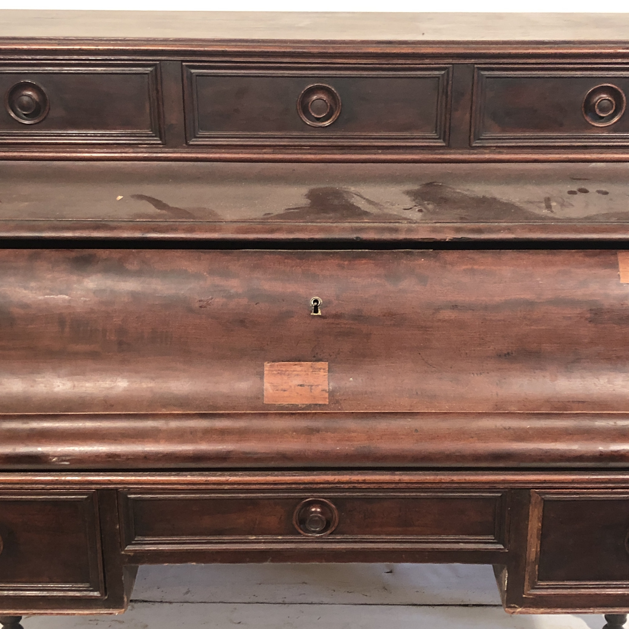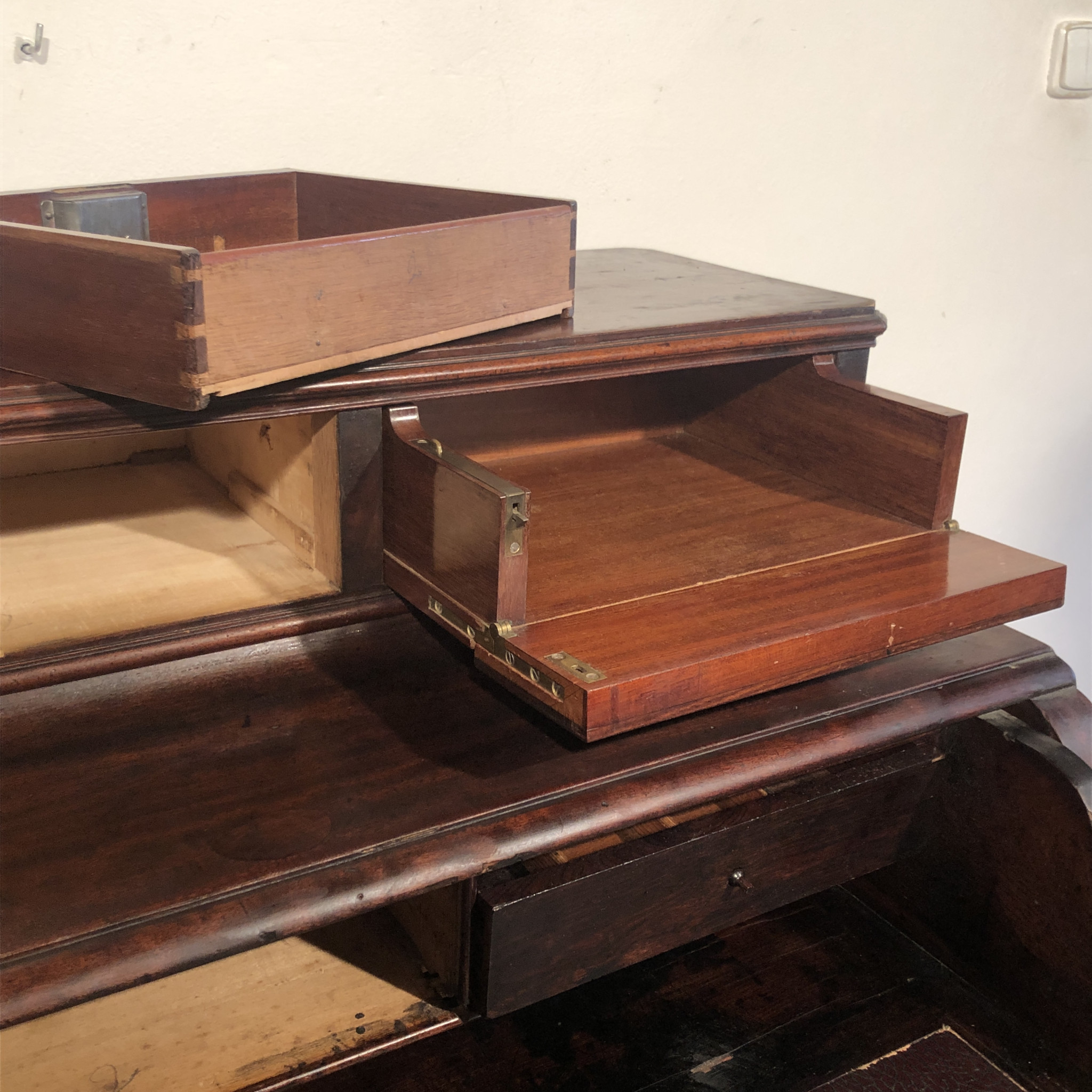 Psací stůl s nástavbou s výklopnými zásuvkami v horní části. (zajímavé technické řešení)