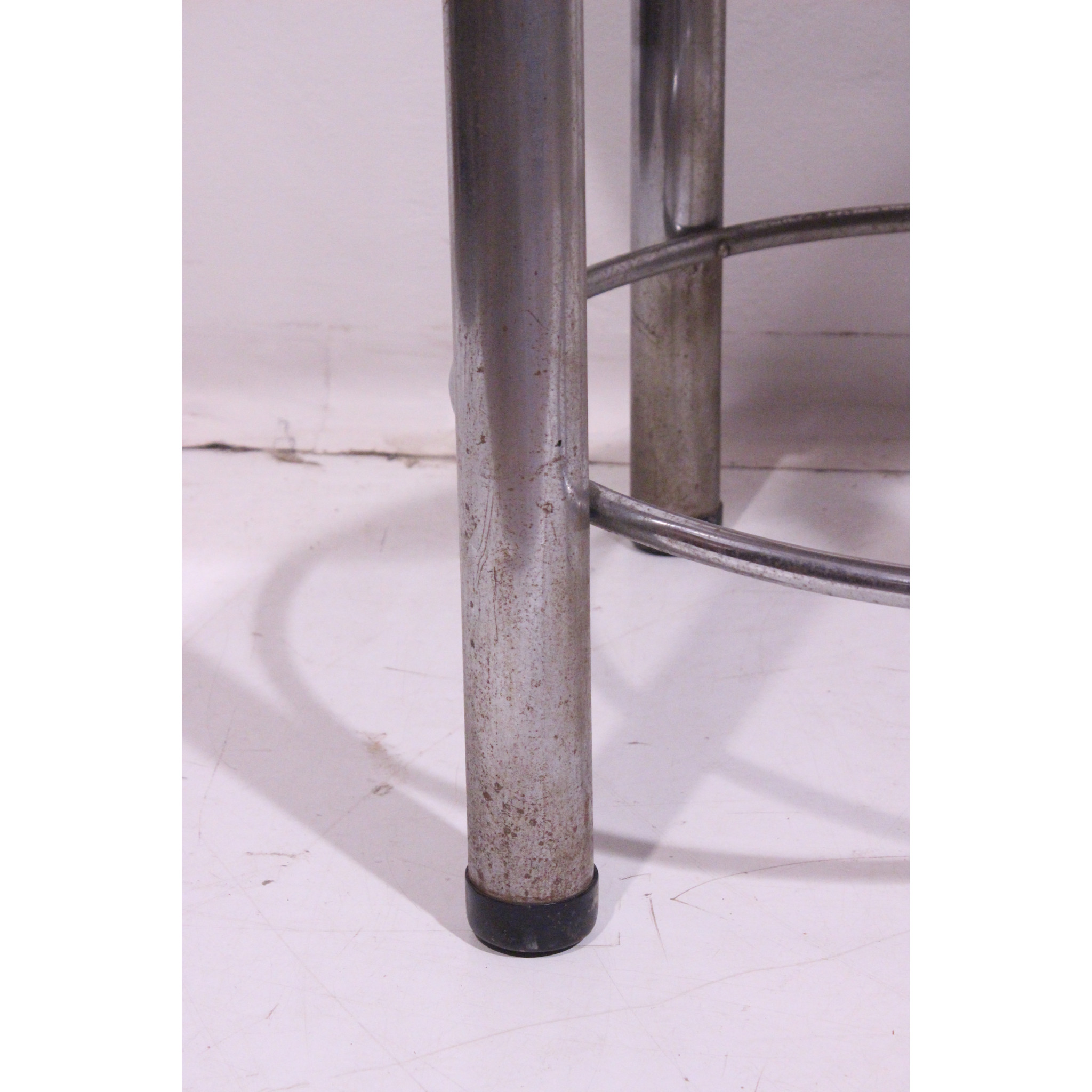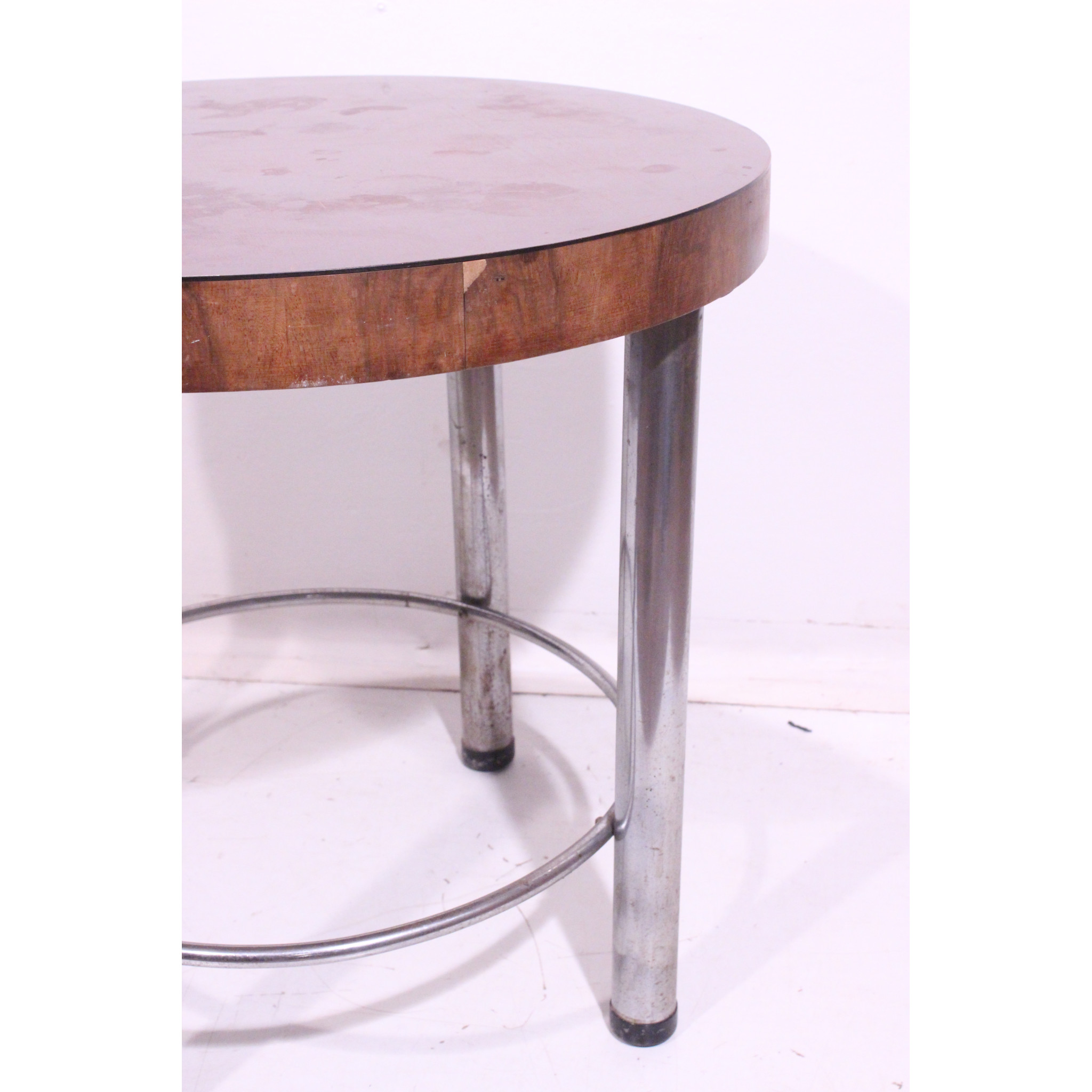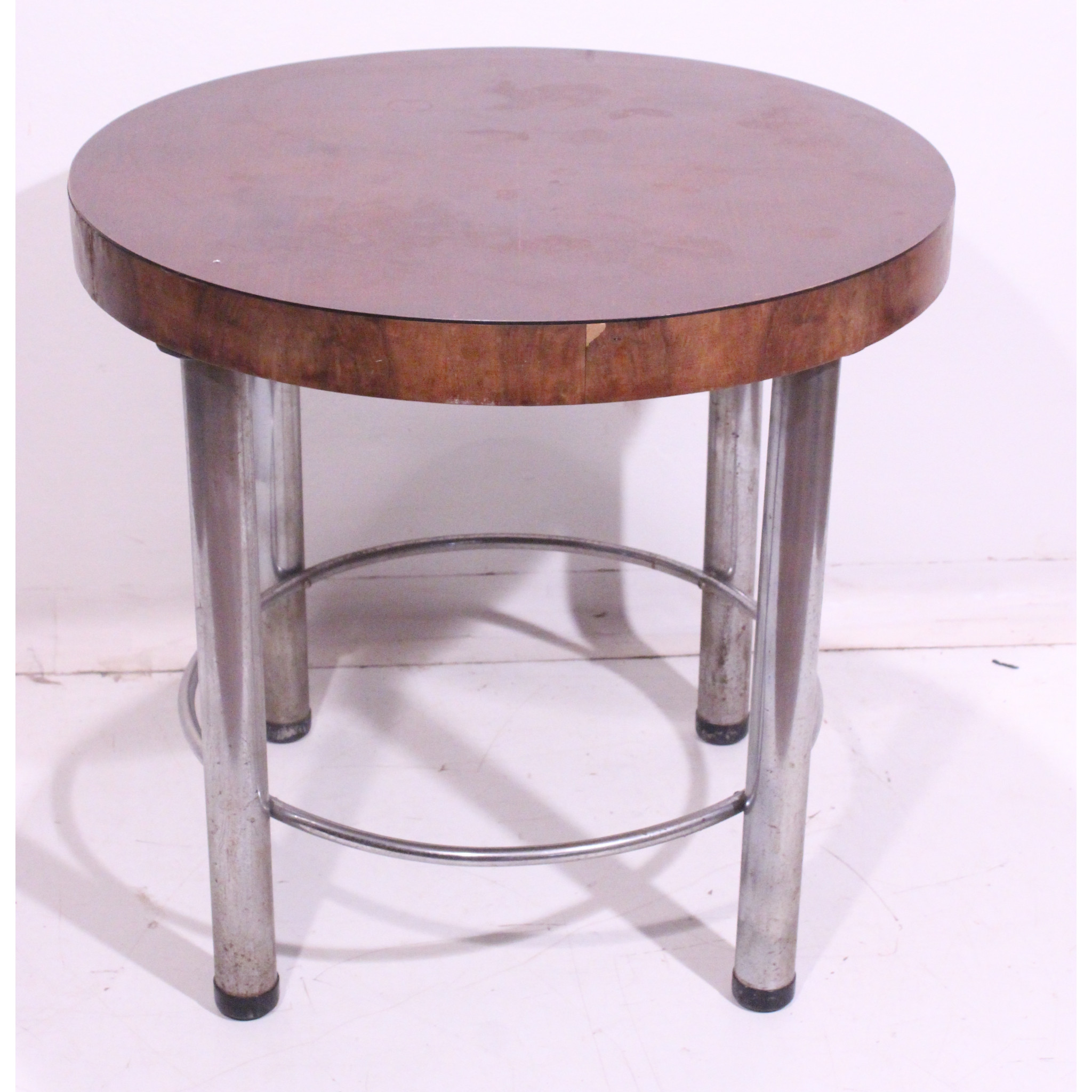 Modernistický stolek s chromovým podnožím.