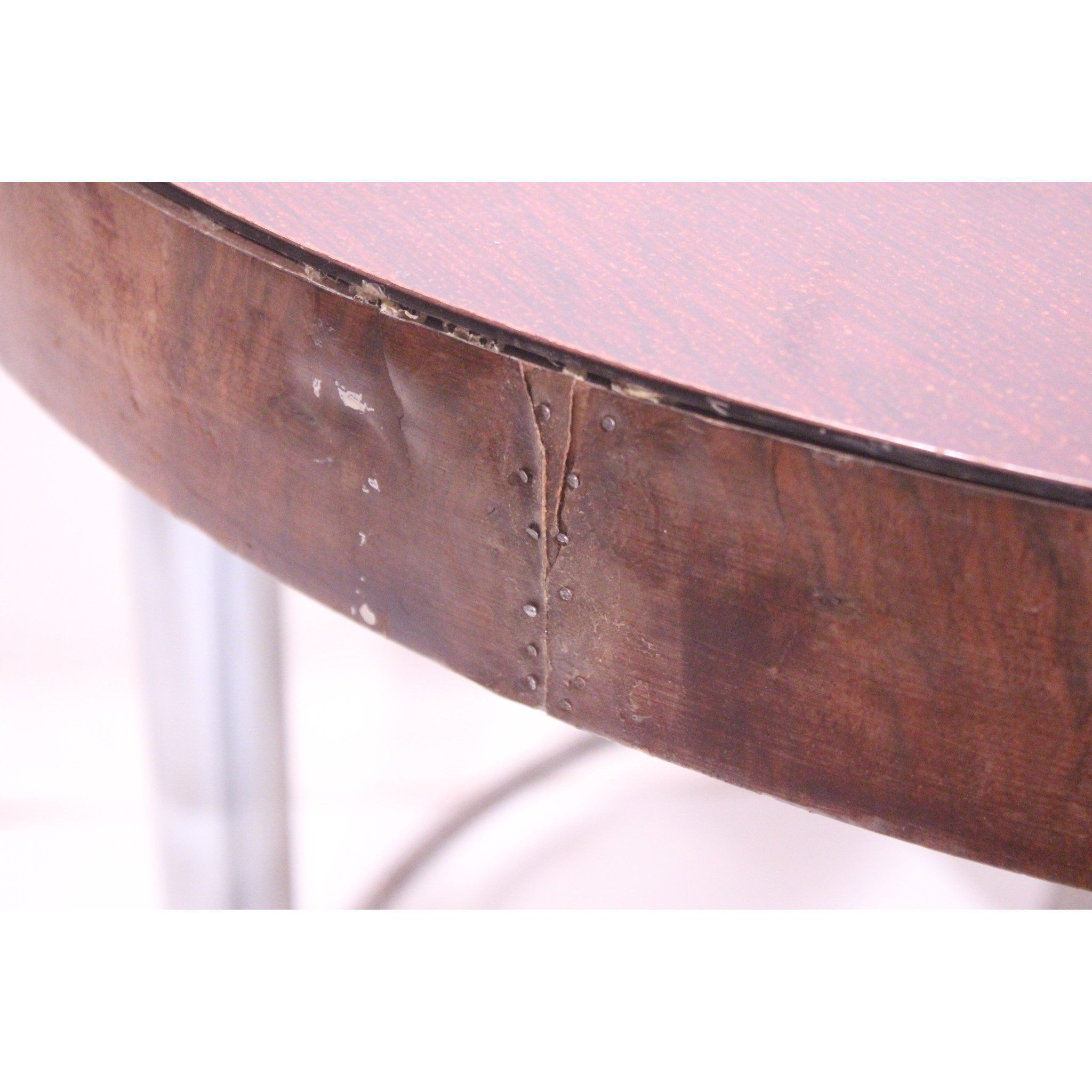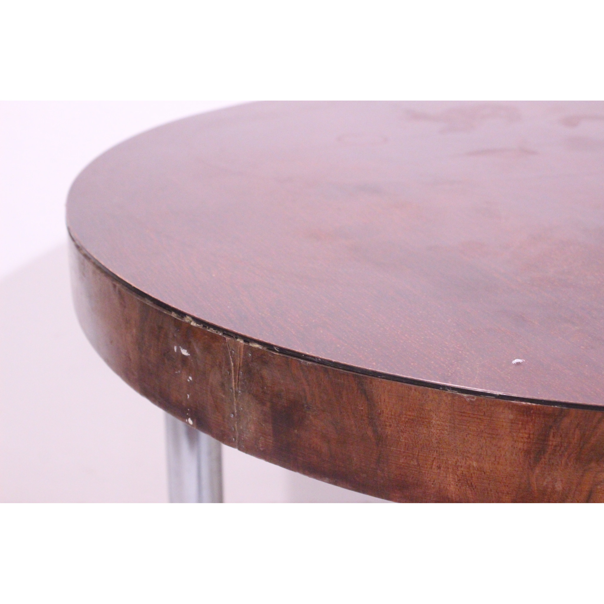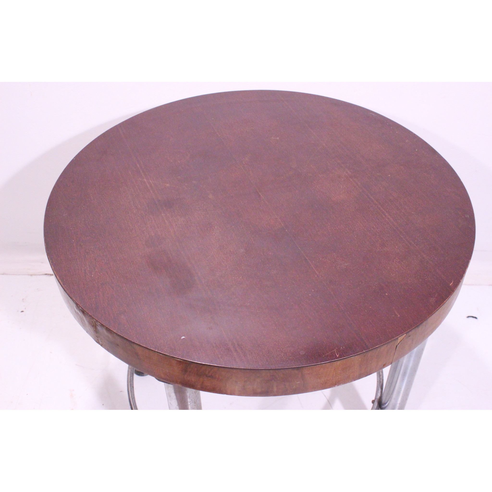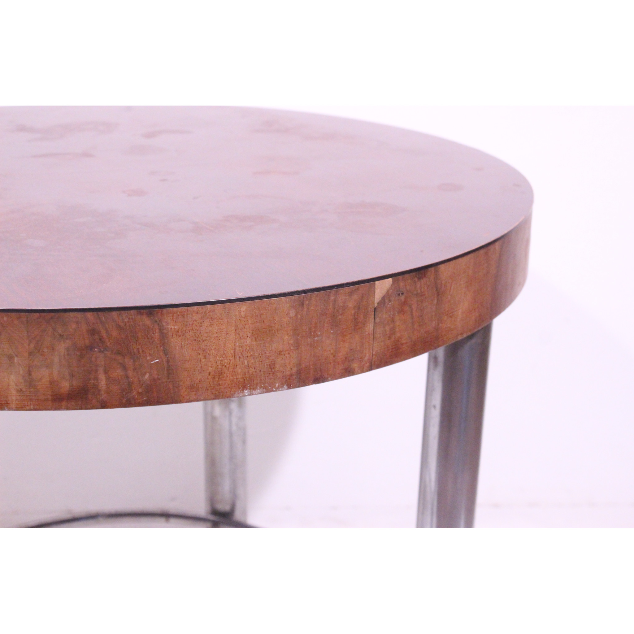 Modernistický stolek s chromovým podnožím.