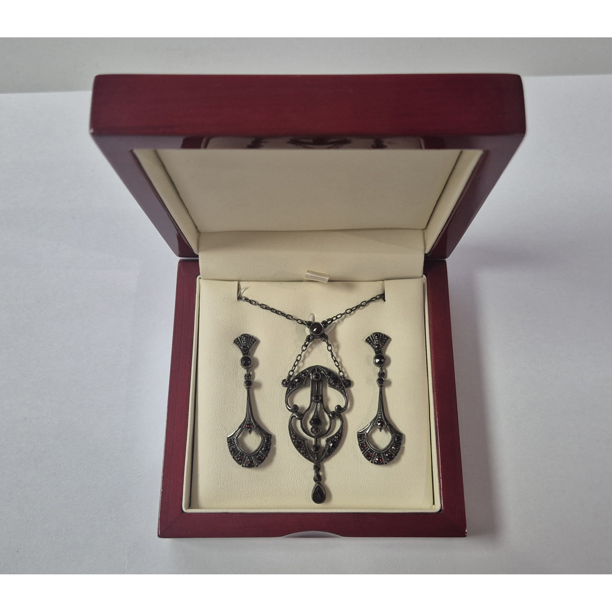 Rozměry: koliér 5,7 x 2,3 cm, náušnice 4,5 x 1,6 cm, délka řetízku 44,5 cm