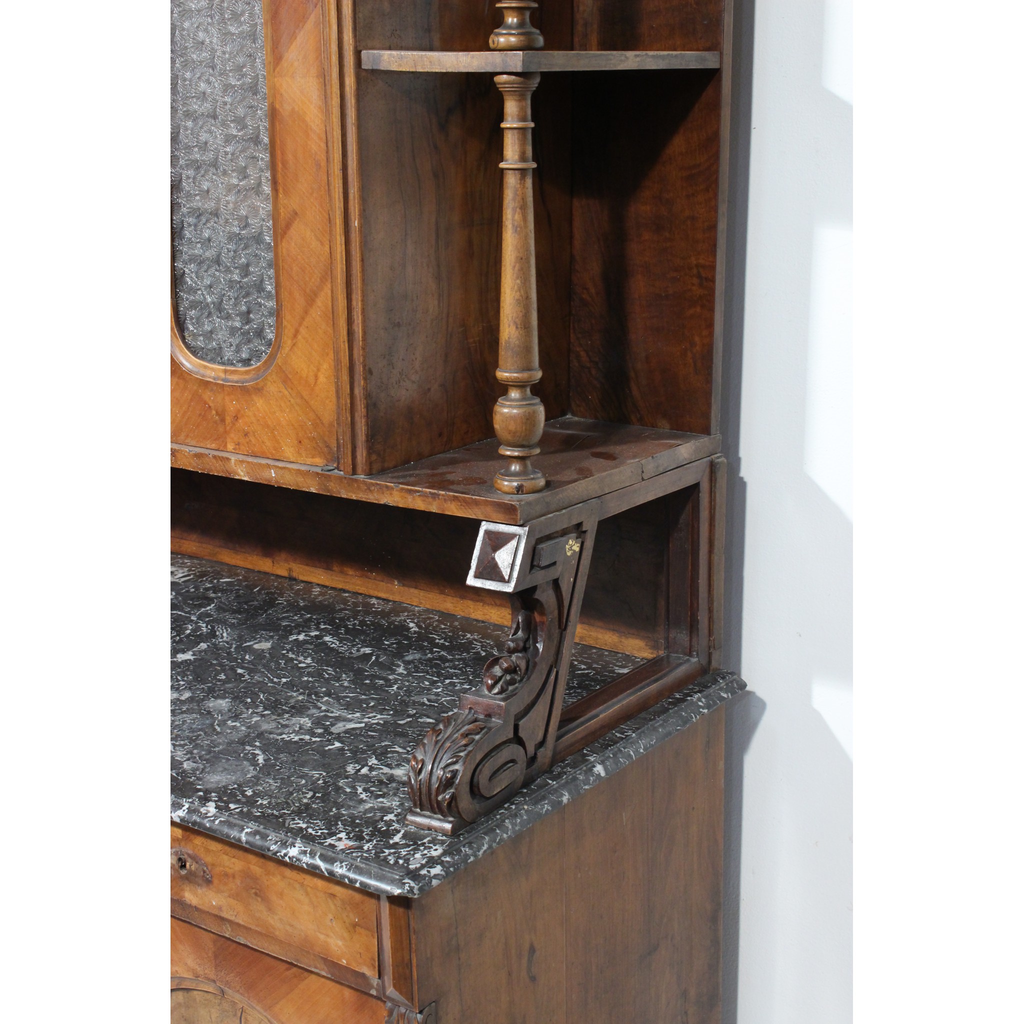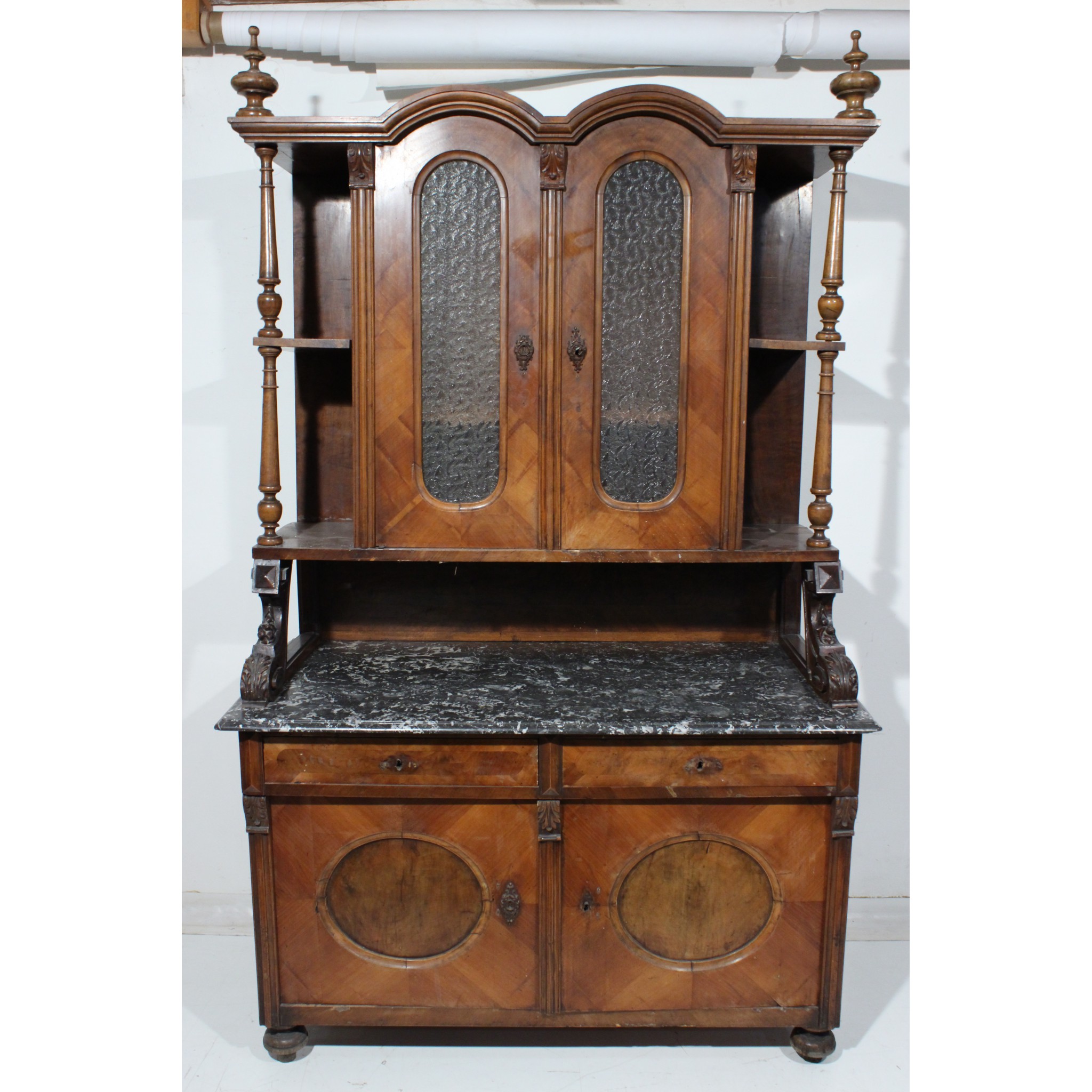 Rozměry: šířka 126 cm, výška komody 79 cm, celková výška 195 cm, hloubka komody 63 cm, hloubka horního dílu 40 cm