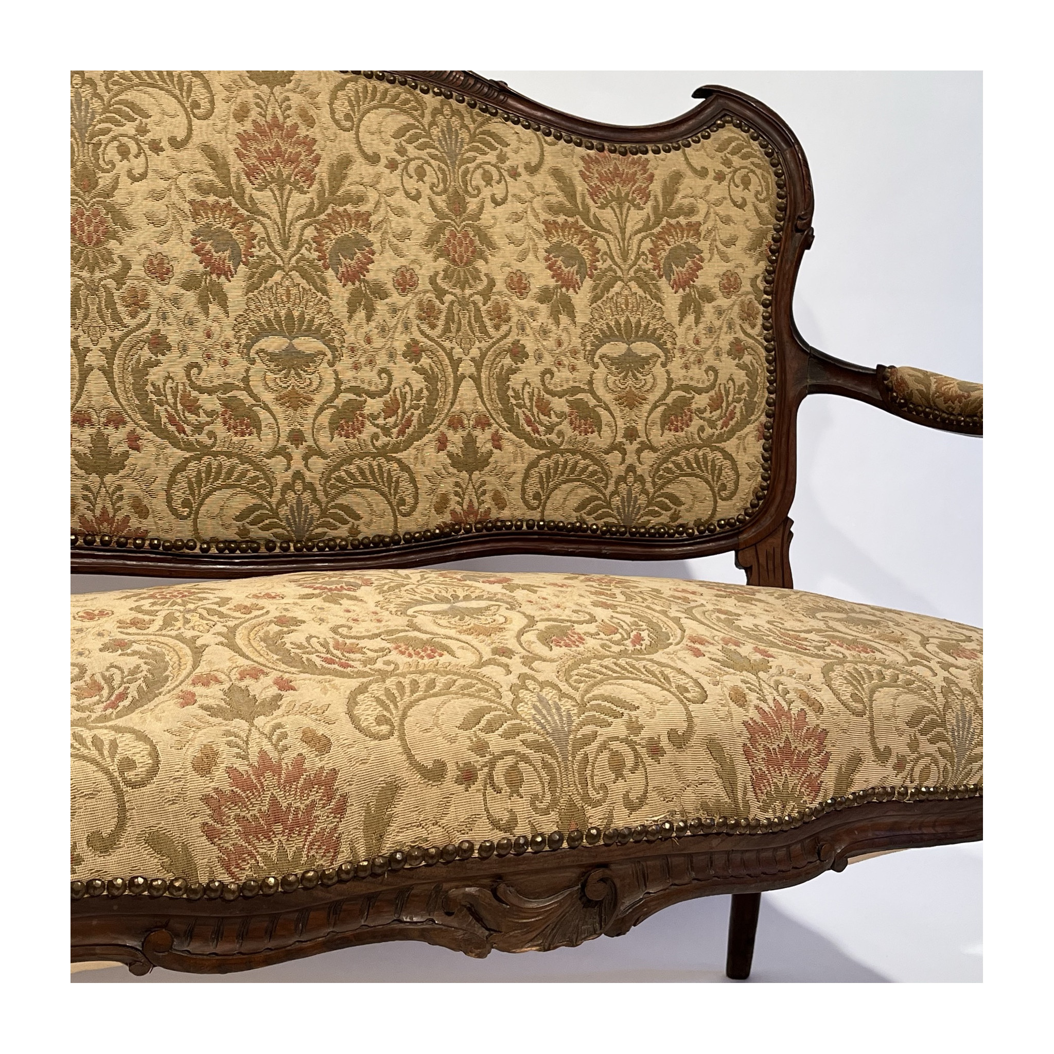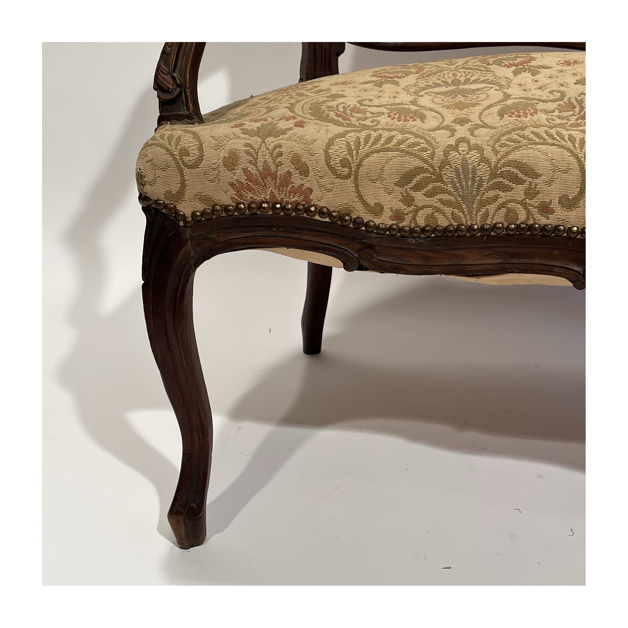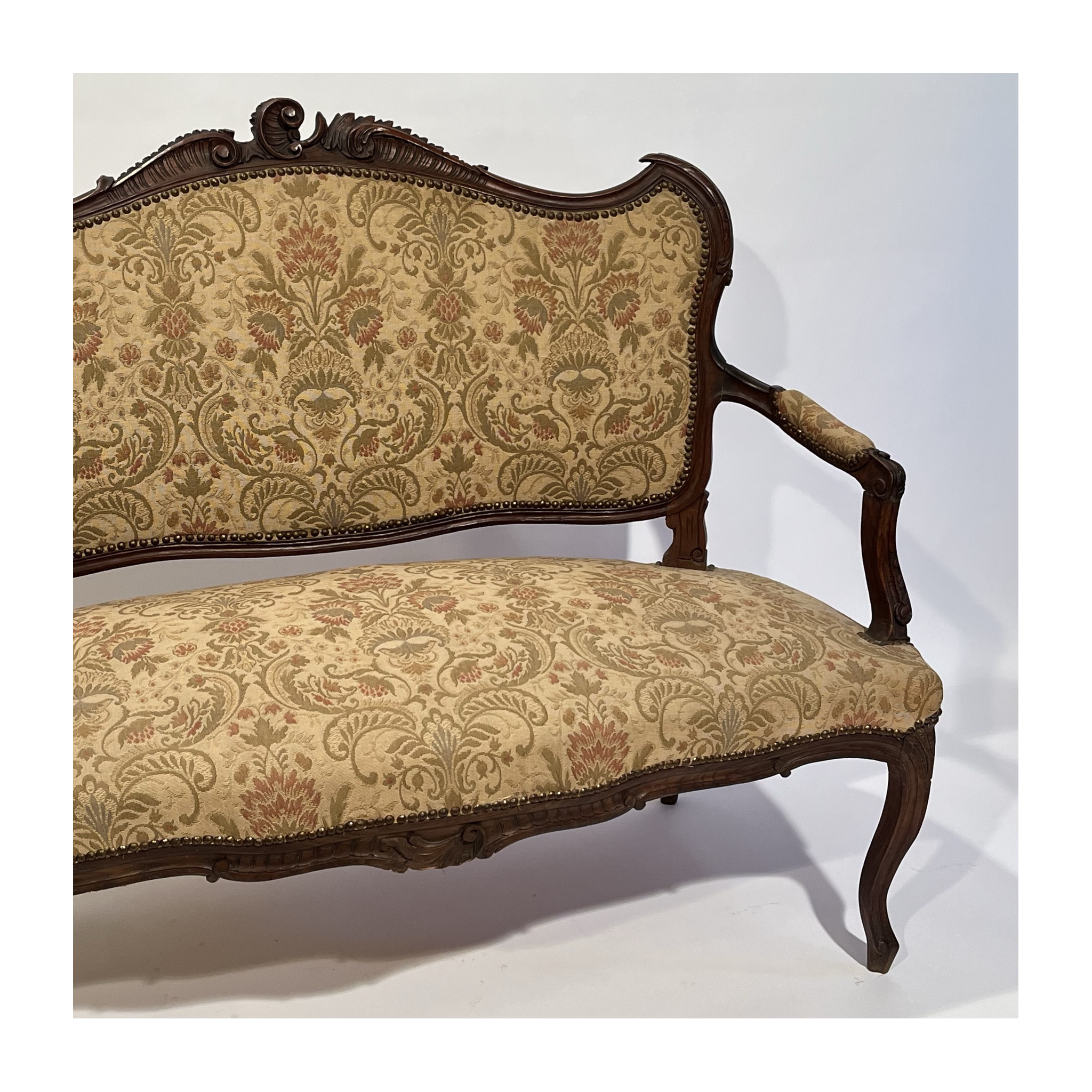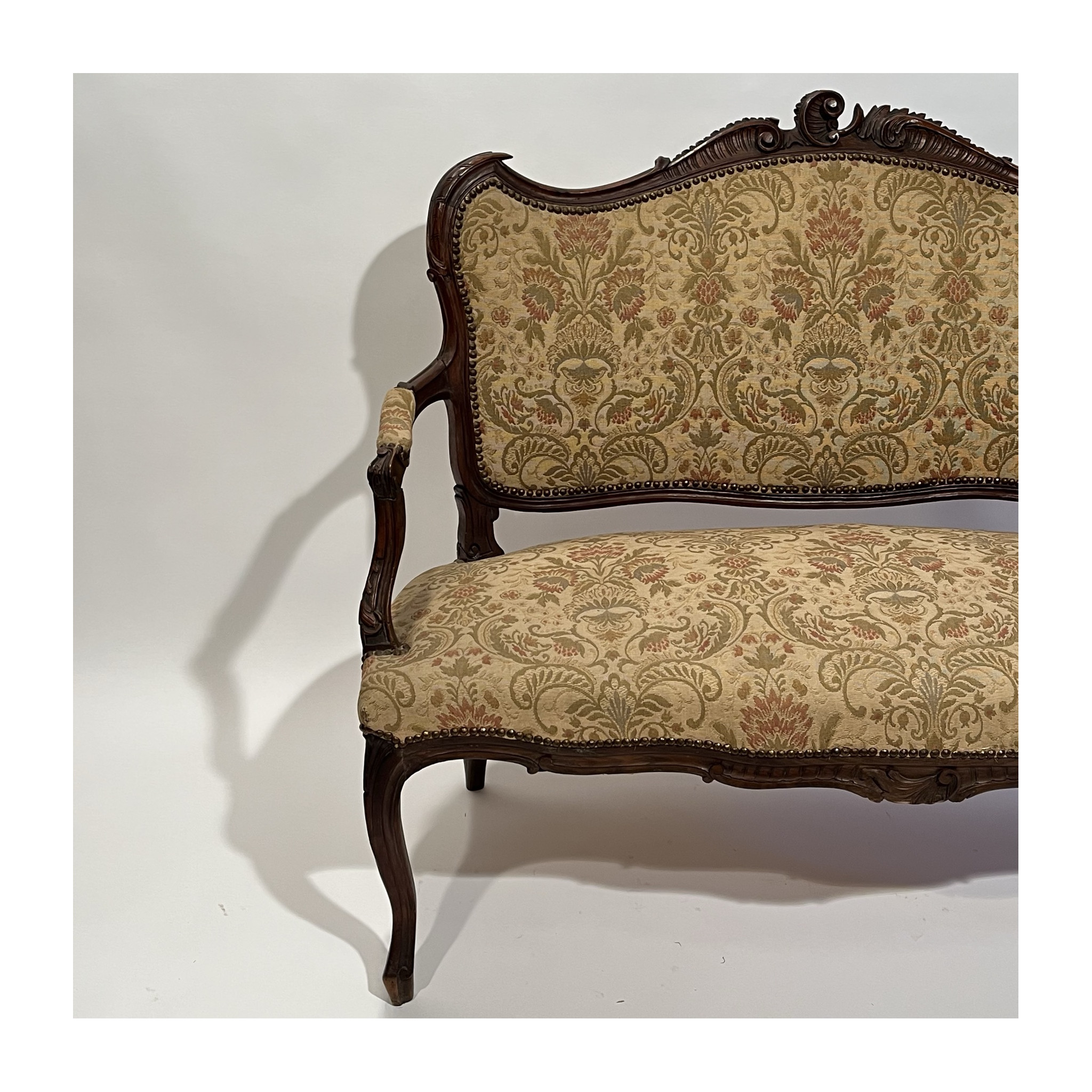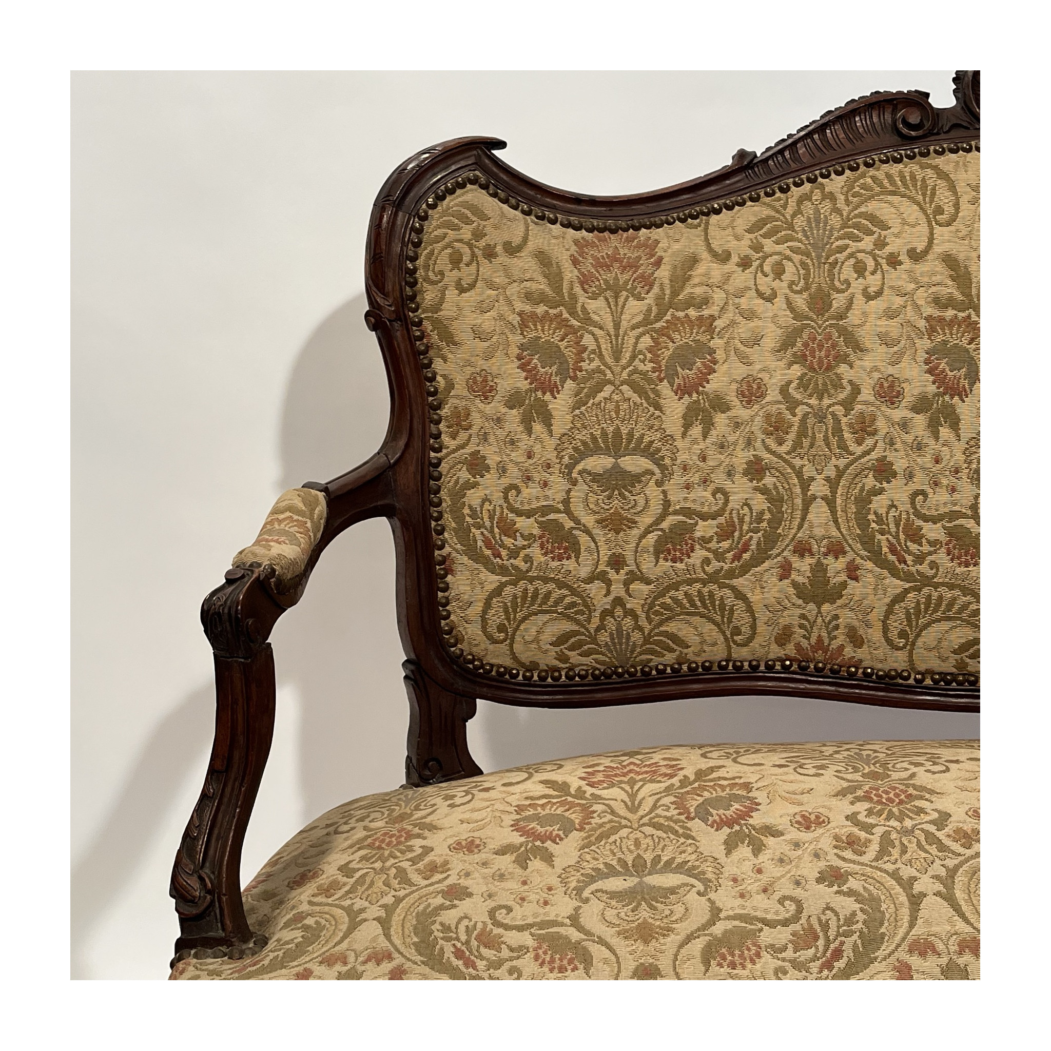 Materiál: ořech masiv s detailními dřevořezbami a vyšívanou látkou, ve výjimečném zachovalém stavu