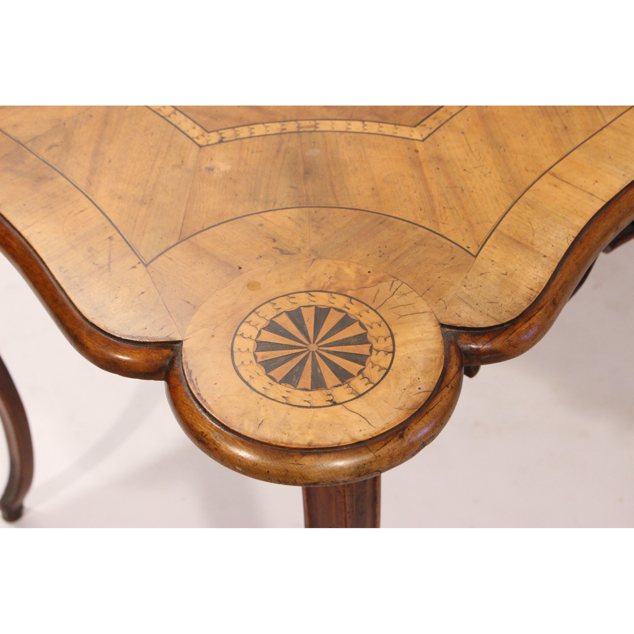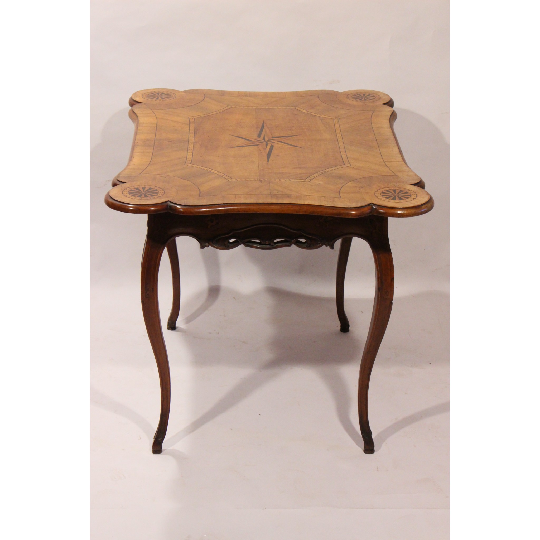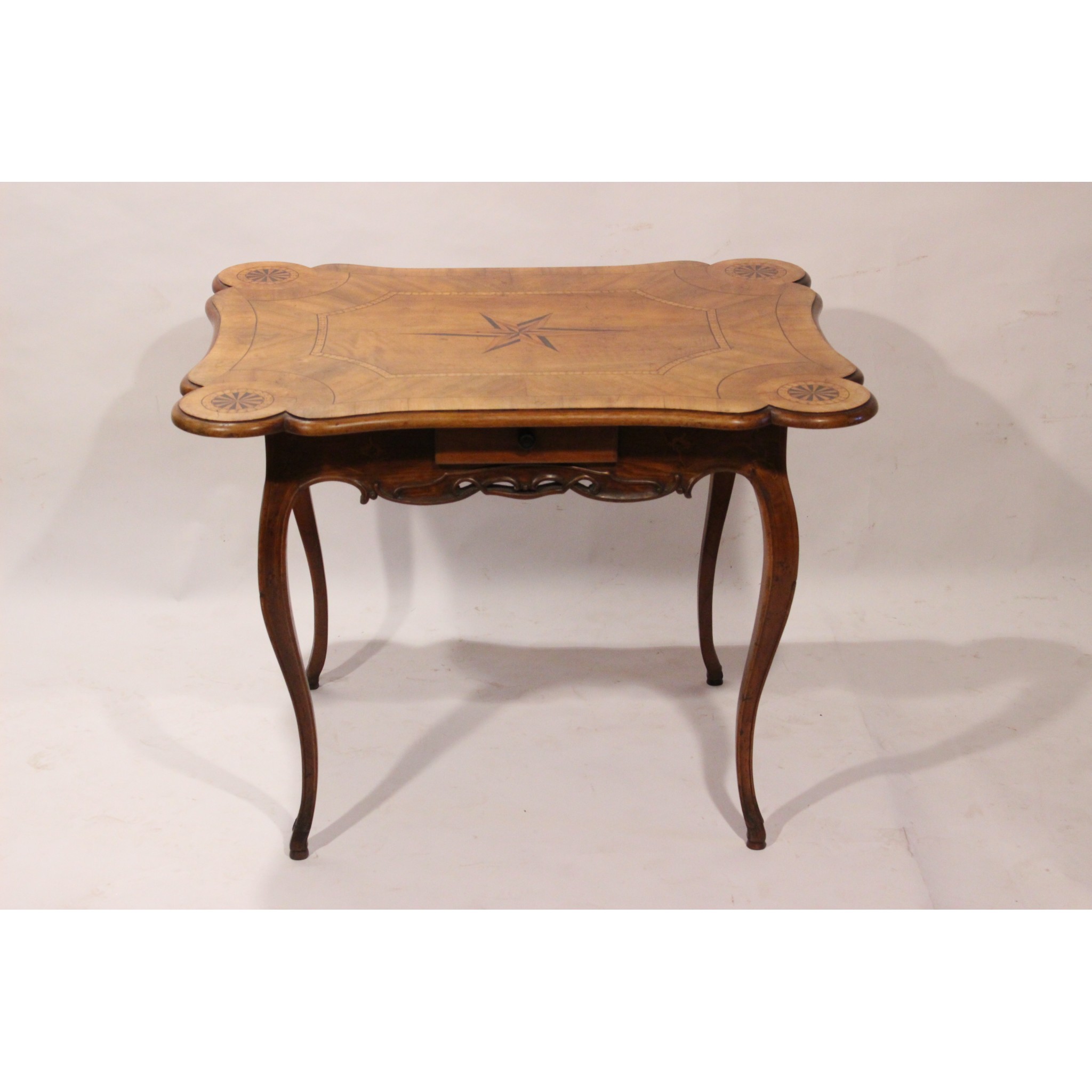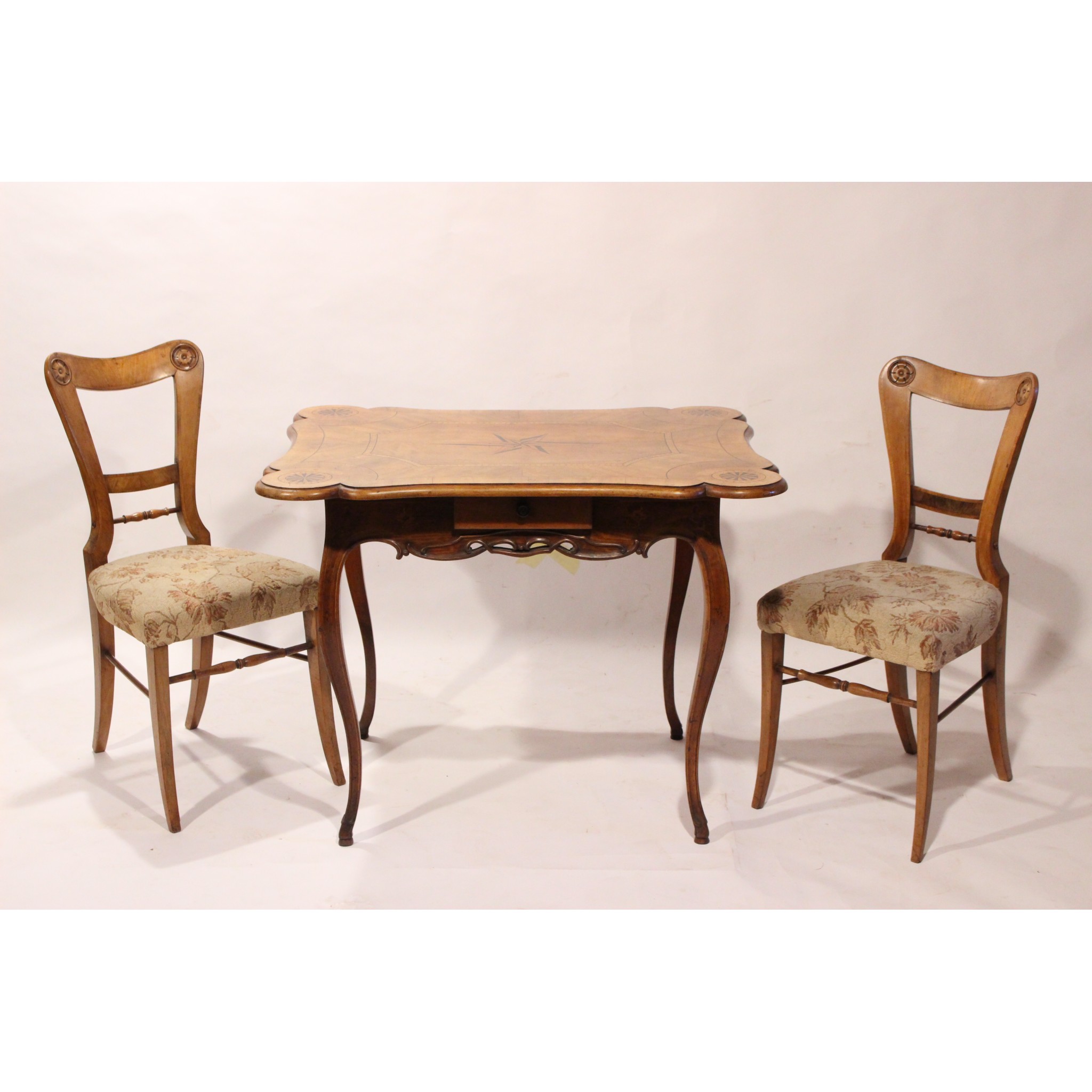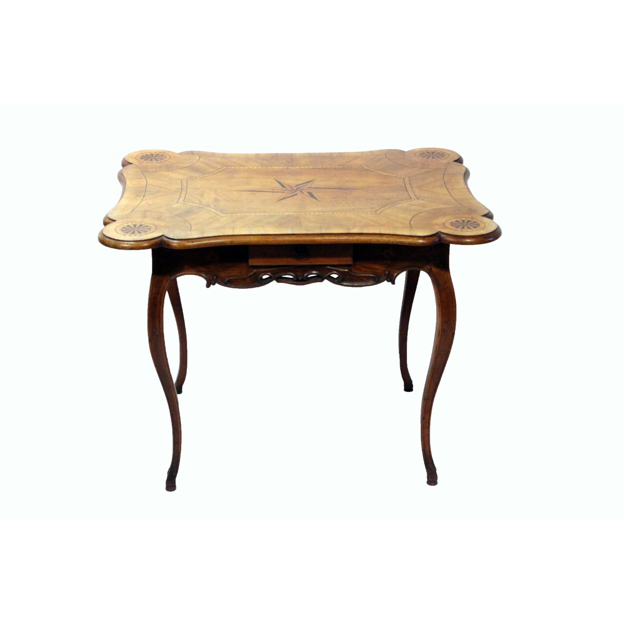 Materiál: ořech dýha masiv, geomterické intarsie z ovocných dřevin